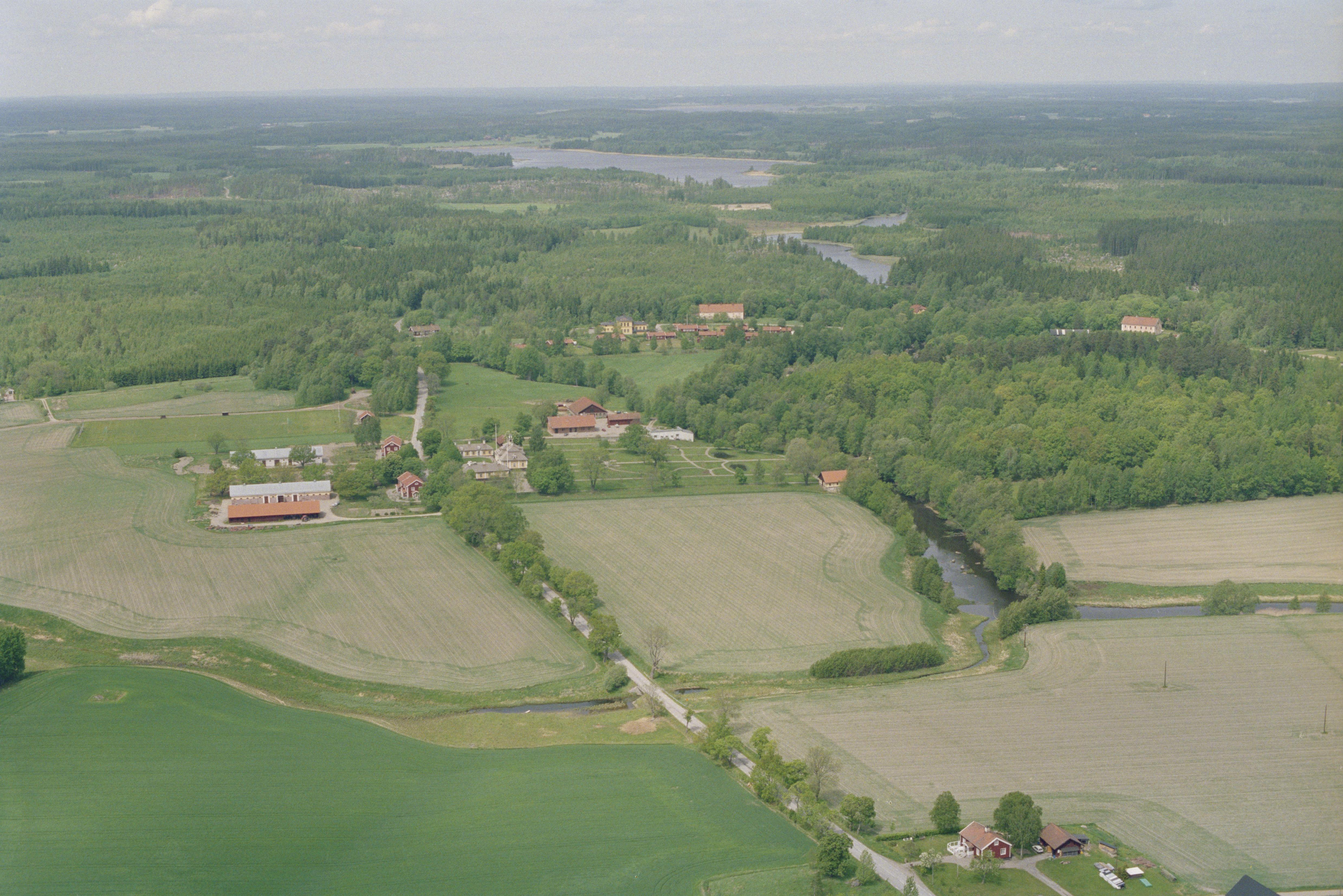 Beskrivning: Svanå bruk i Svartåns dalgång. Vid bildens mitt Svanå herrgård i slottsområdet RAÄnr Haraker 219. Hammarområde RAÄnr Haraker 77:1 till höger över bildens mitt. Bilden är tagen mot (väderstreck): NNV