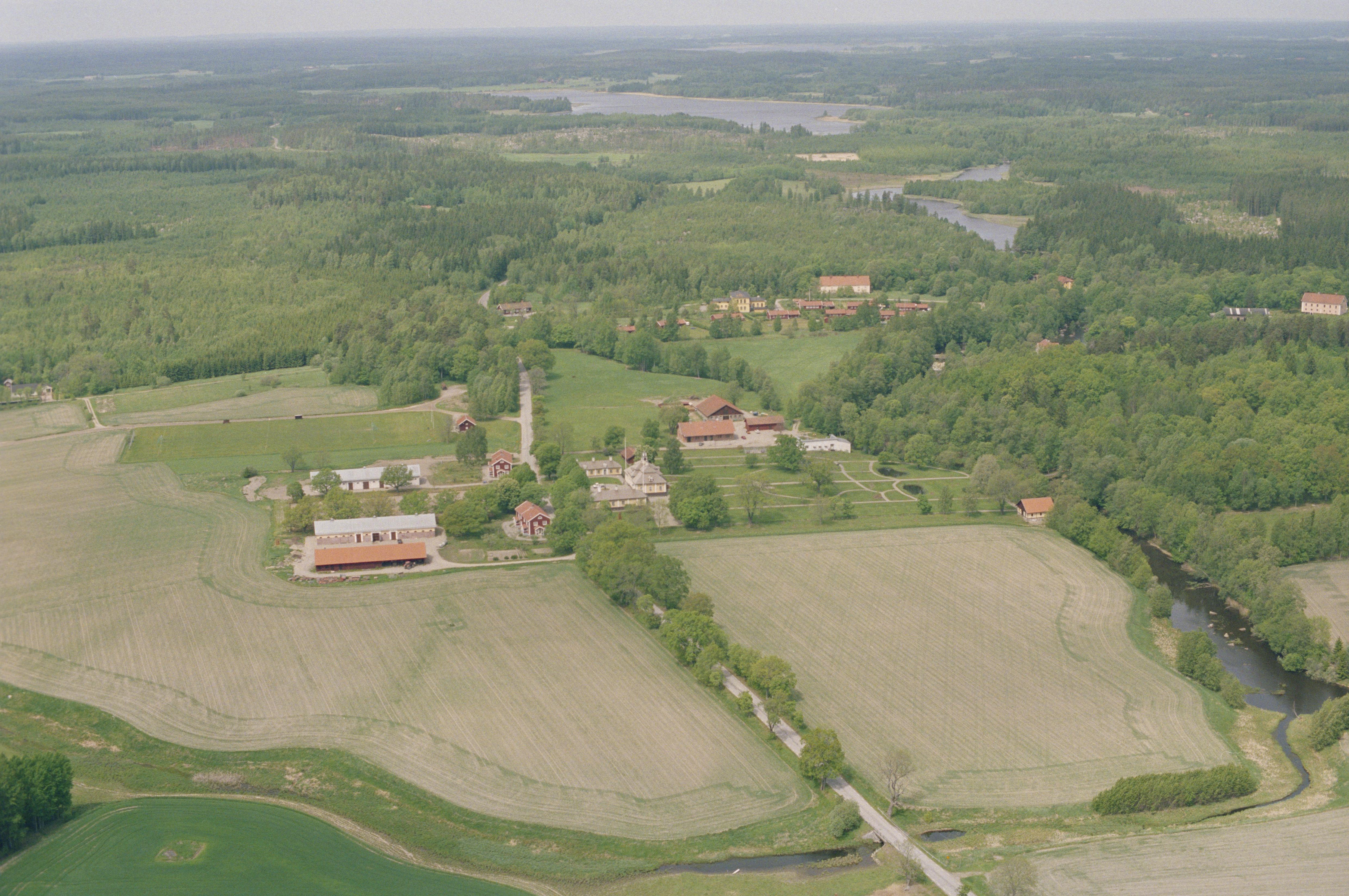 Beskrivning: Svanå bruk i Svartåns dalgång. Vid bildens mitt Svanå herrgård i slottsområdet RAÄnr Haraker 219. Hammarområde RAÄnr Haraker 77:1 till höger över bildens mitt. Bilden är tagen mot (väderstreck): NNV