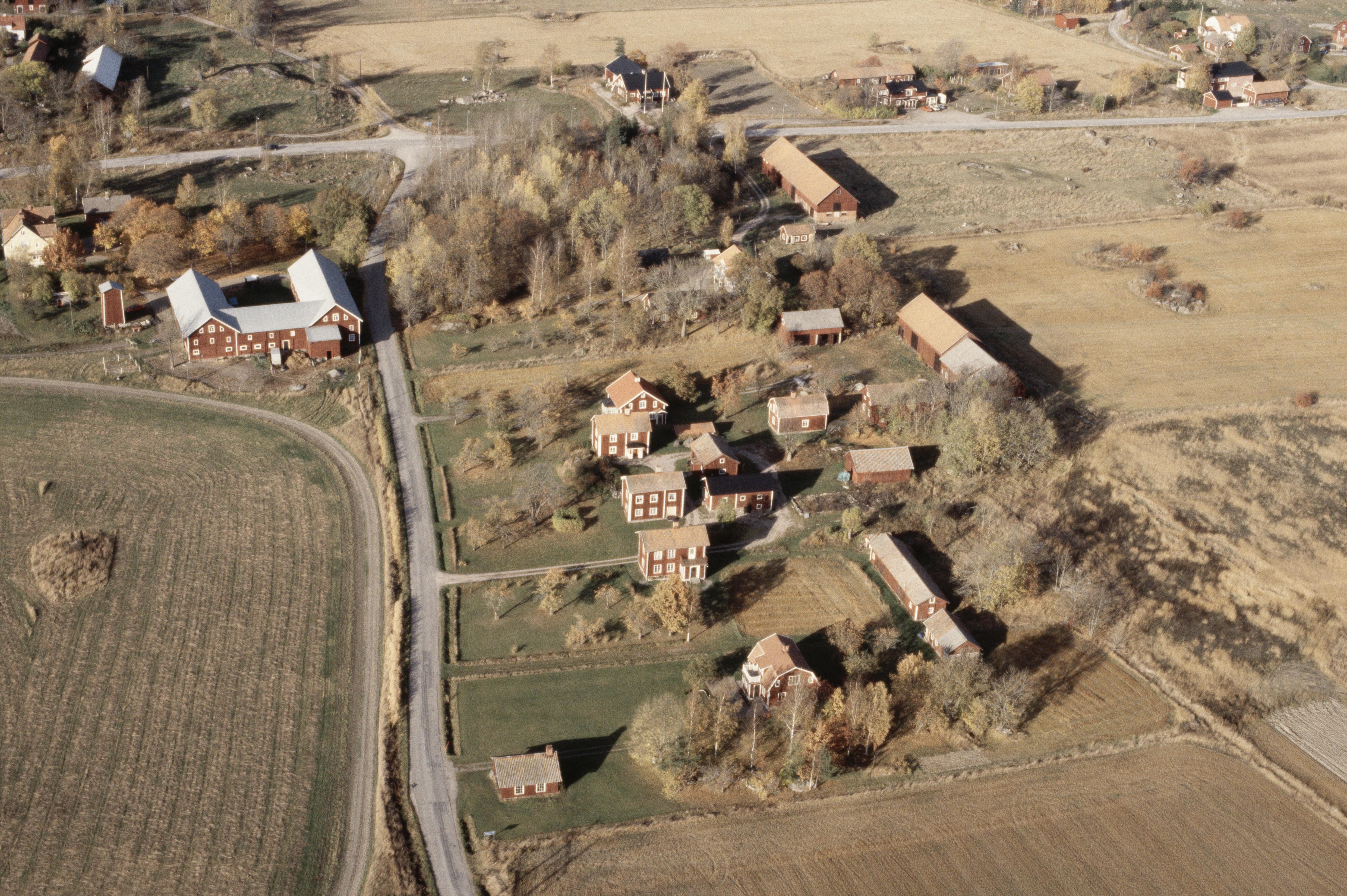 Beskrivning: Oppeby i Rabobäckens dalgång. Bland träden i bildens övre del stensättningar RAÄnr Himmeta 18:1-2. Bilden är tagen mot (väderstreck): N