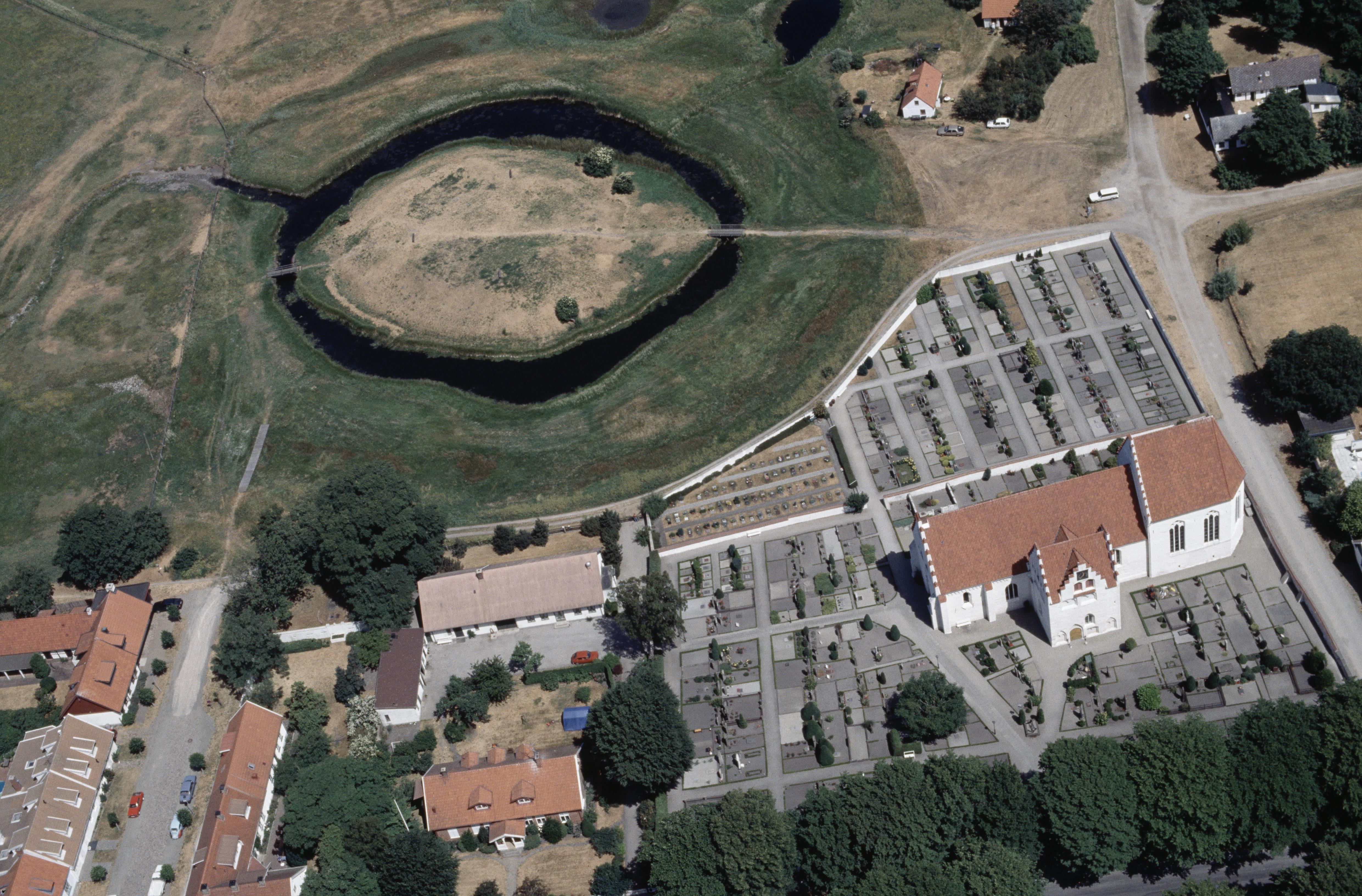 Beskrivning: Skanörs kyrka och Skanörs borgruin RAÄnr Skanör m. Falsterbo 1:1. Bilden är tagen mot (väderstreck): NO