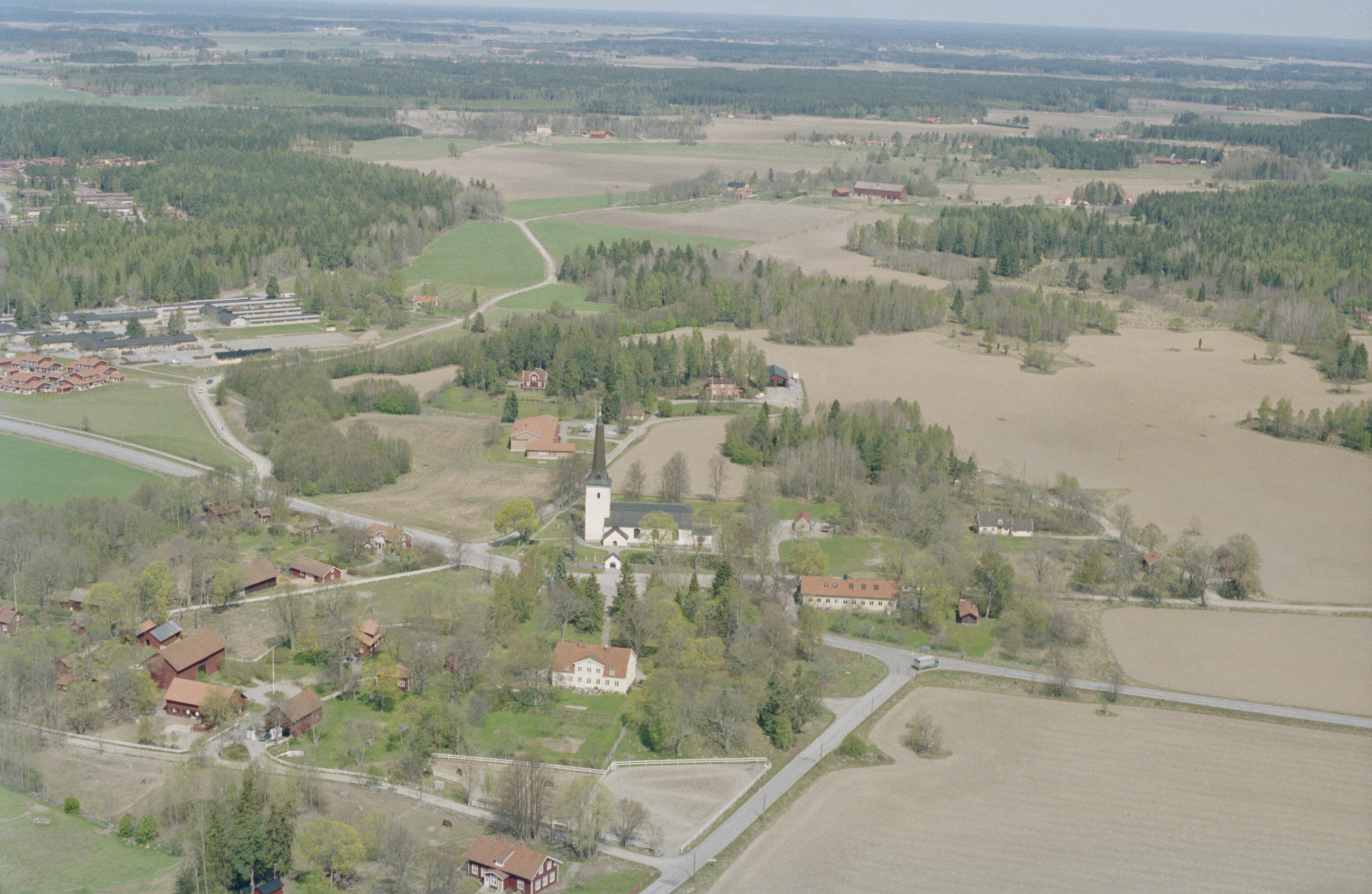 Beskrivning: Irsta tätort. Vid bildens mitt Irsta kyrka i Gullbobäckens dalgång. Bilden är tagen mot (väderstreck): N