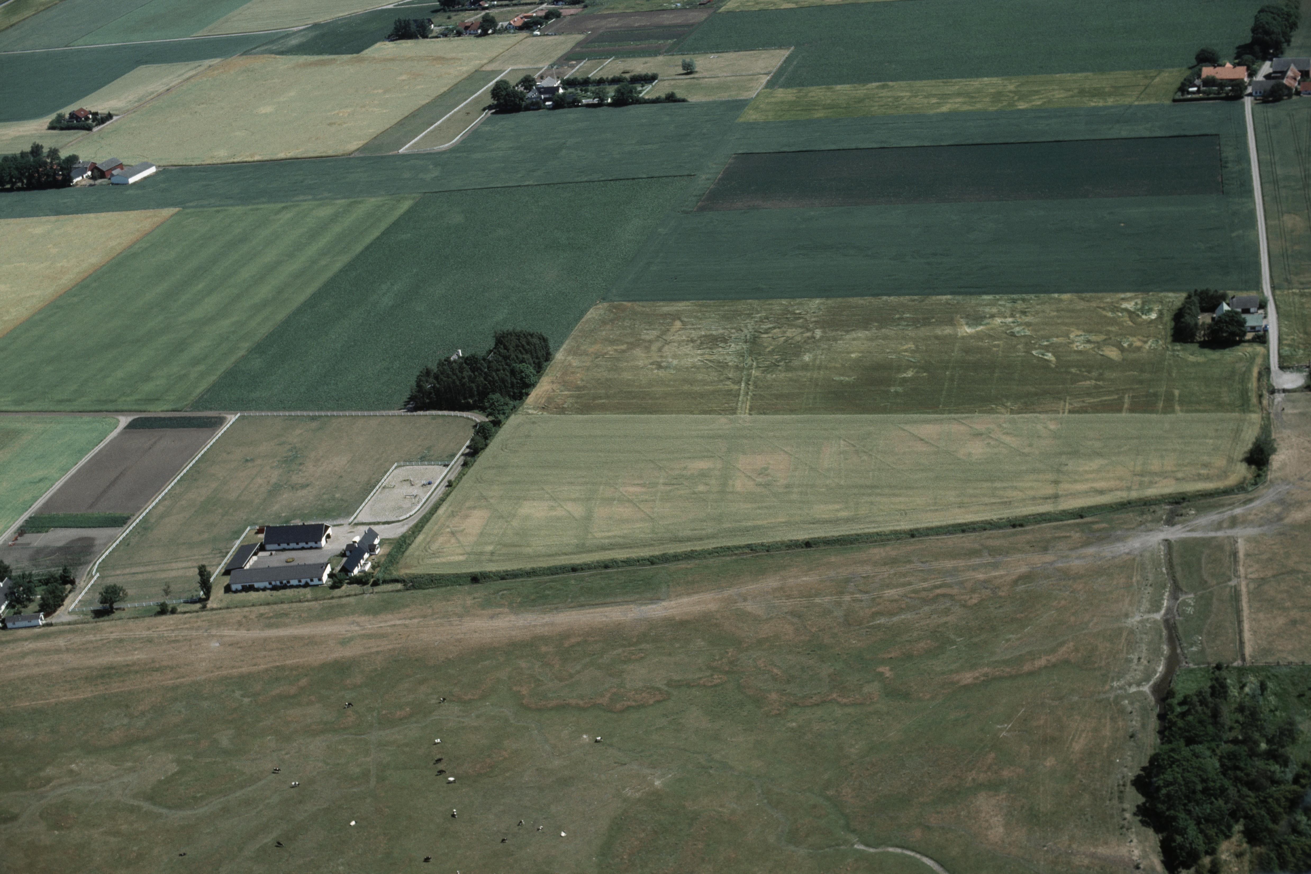 Beskrivning: Cropmarks / boplats (?) RAÄnr Vellinge 69:1 mellan Hagaviken och Birgittagården på stranden vid Foteviken och Stenspärren RAÄnr Stora Hammar 23:1. Bilden är tagen mot (väderstreck): NO