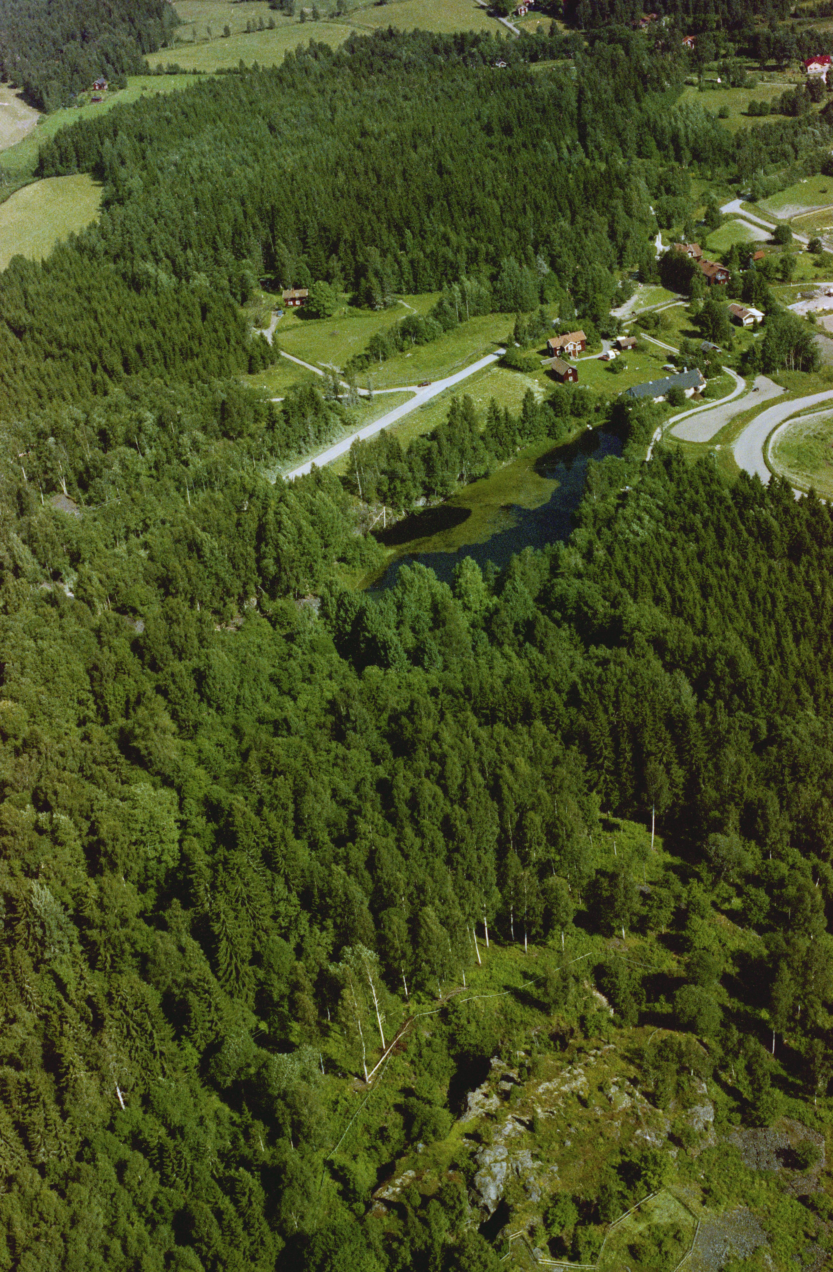 Beskrivning: Gruvparken mellan byarna Klacka-Lerberg i Nora socken (i bildens nedre del) och Kåfallstorp i Järnboås socken (i bildens övre del). Över bildens mitt gruvhål RAÄnr Järnboås 142:1 vid transportbana för malm Järnboås 55:1. Vid bildens mitt gruvområde RAÄnr Nora 10:1 m.fl. Nere till höger gruvhål Nora 269:1. Bilden är tagen mot (väderstreck): N