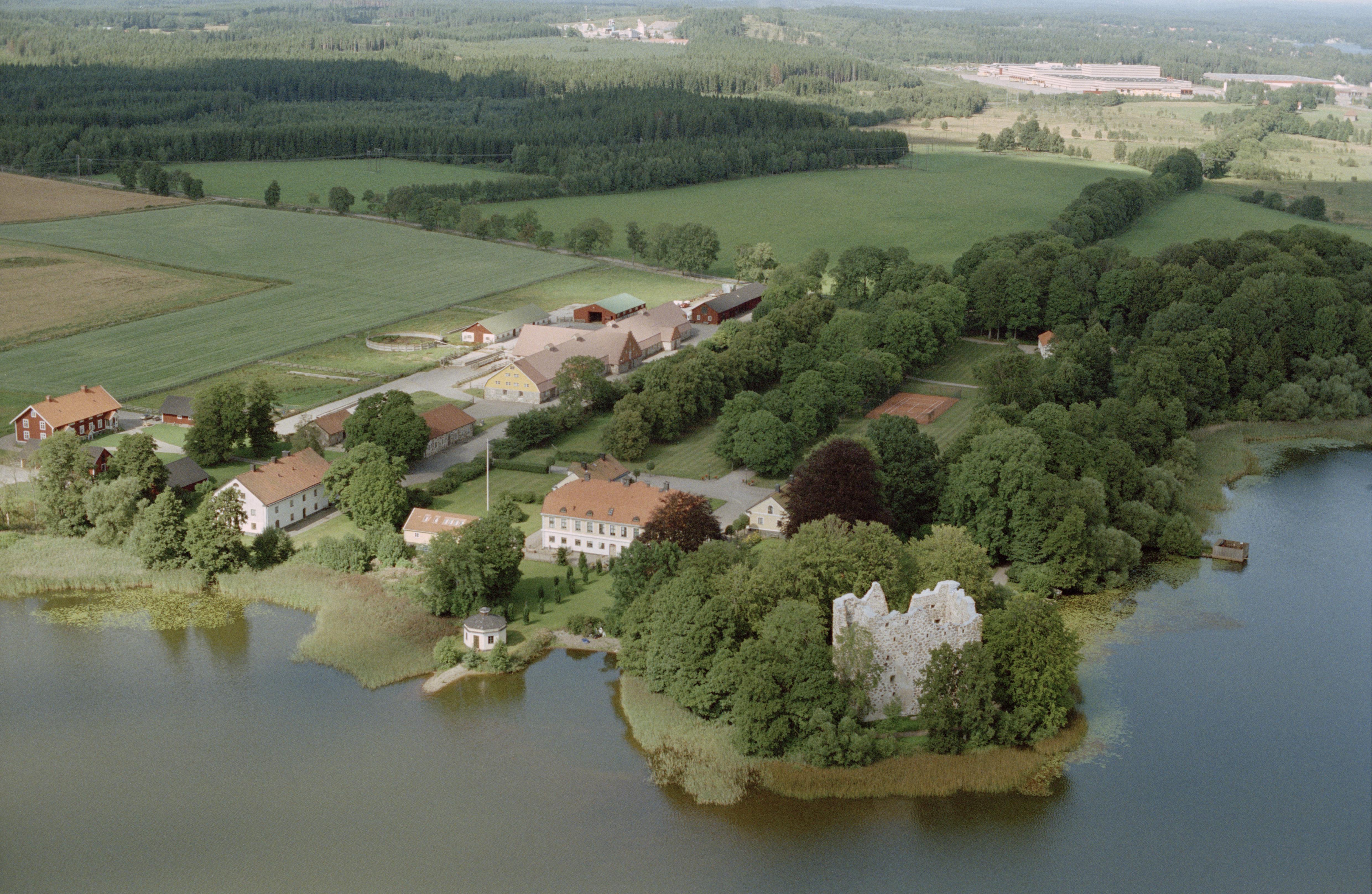 Beskrivning: Bergkvara herrgård och medeltida slottsruin RAÄnr Bergunda 32:1 vid Bergkvarasjön. Bilden är tagen mot (väderstreck): NV
