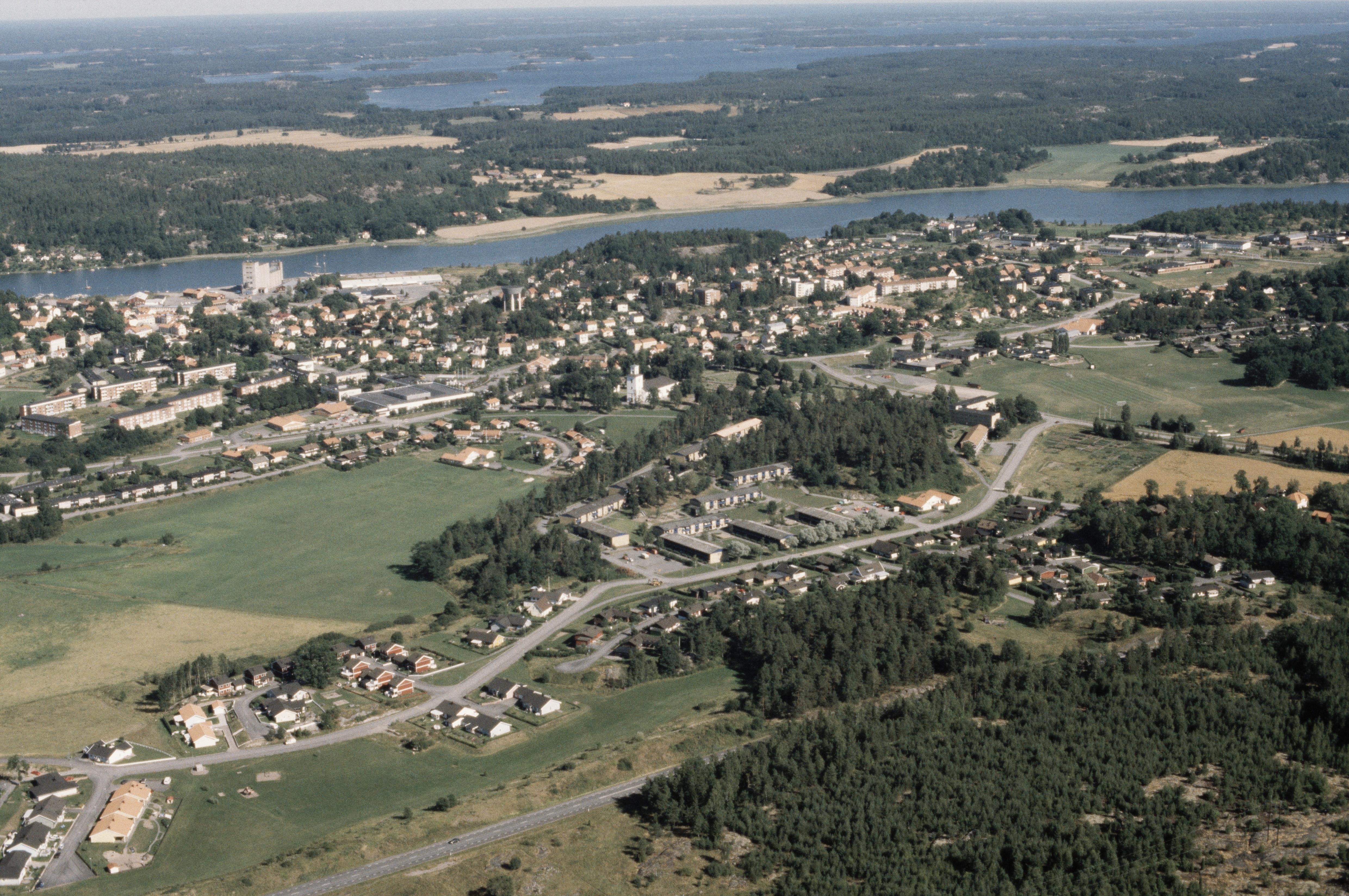 Beskrivning: Gamleby tätort vid Gamlebyviken. Gamleby kyrka i bildens mitt. Bilden är tagen mot (väderstreck): Ö