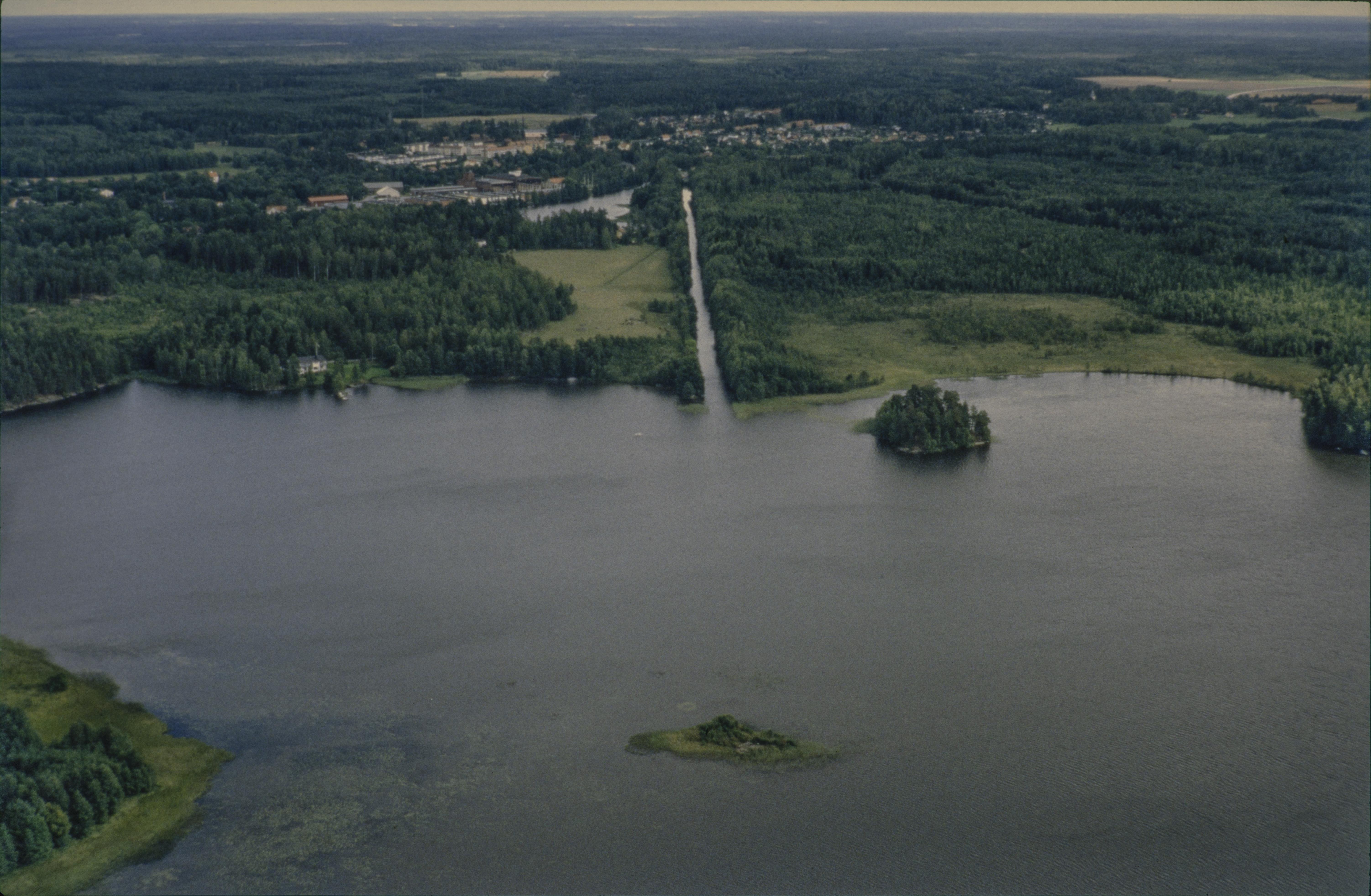 Beskrivning: I bildens nedre del Kolbäcksån och byggnadsminnet Strömsholms kanal i vattenområdet Lilla Nadden. Över bildens mitt fortsätter Kolbäcksån och Strömsholms kanal mot Ramnäs bruk och tätort. I bildens övre del hammarområde RAÄnr Ramnäs 32:1 och 87:1. Bilden är tagen mot (väderstreck): OSO