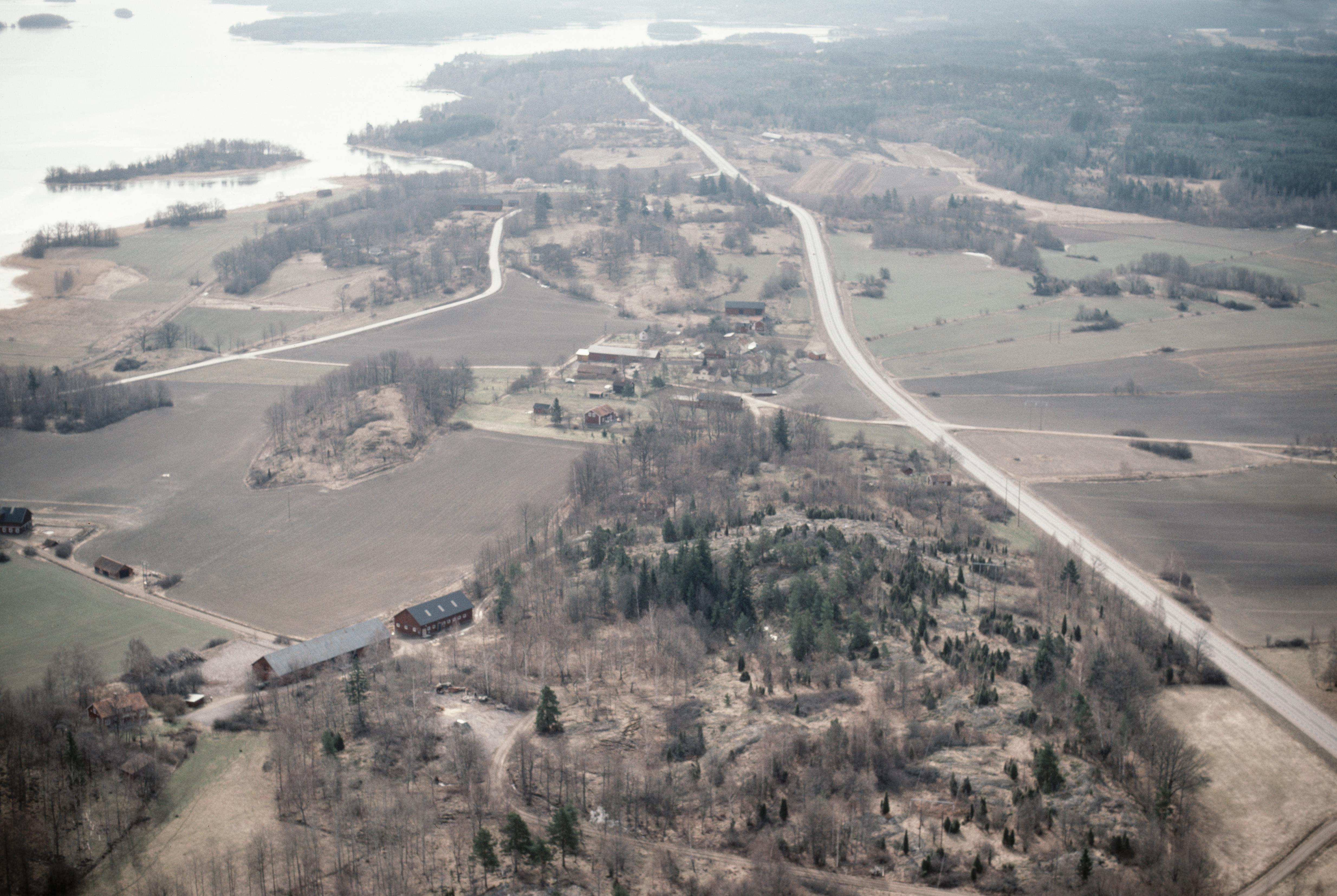 Beskrivning: Fornlämningsområde vid Gamlebyviken i södra delen av Gamleby tätort. Härstad, Ullevi och Baggetorp. Gravfält RAÄnr Gamleby 23:1 och 18:1 m.fl. vid bildens mitt. Bilden är tagen mot (väderstreck): SO