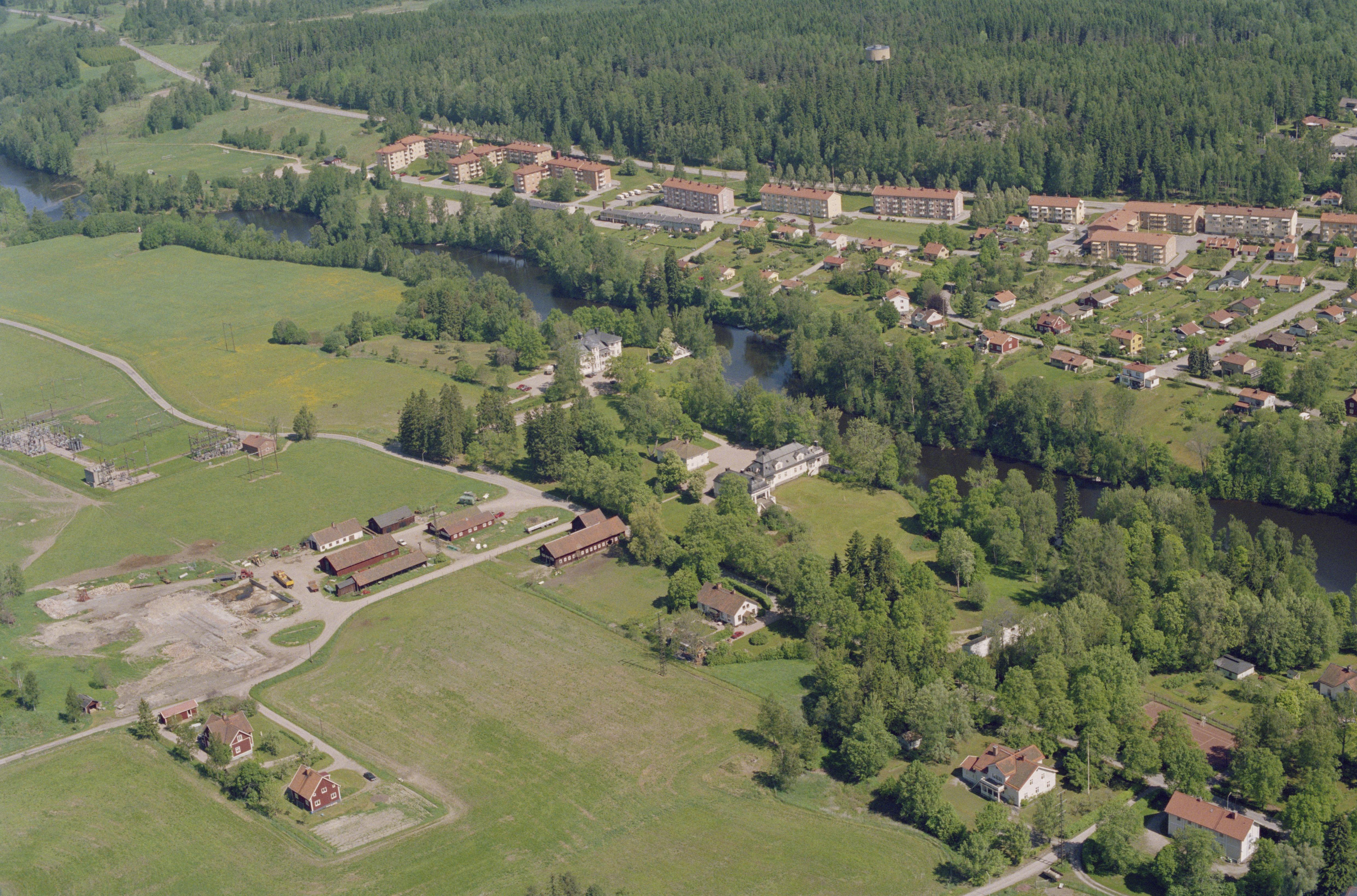 Beskrivning: Hedströmmen vid Kolsva bruk och tätort. Till vänster om bildens mitt Kolsva herrgård (skrivs även Kohlswa herrgård). Till vänster över bildens mitt fyndplats (yxor m.m.) RAÄnr Kolsva 251:1. Bilden är tagen mot (väderstreck): NO
