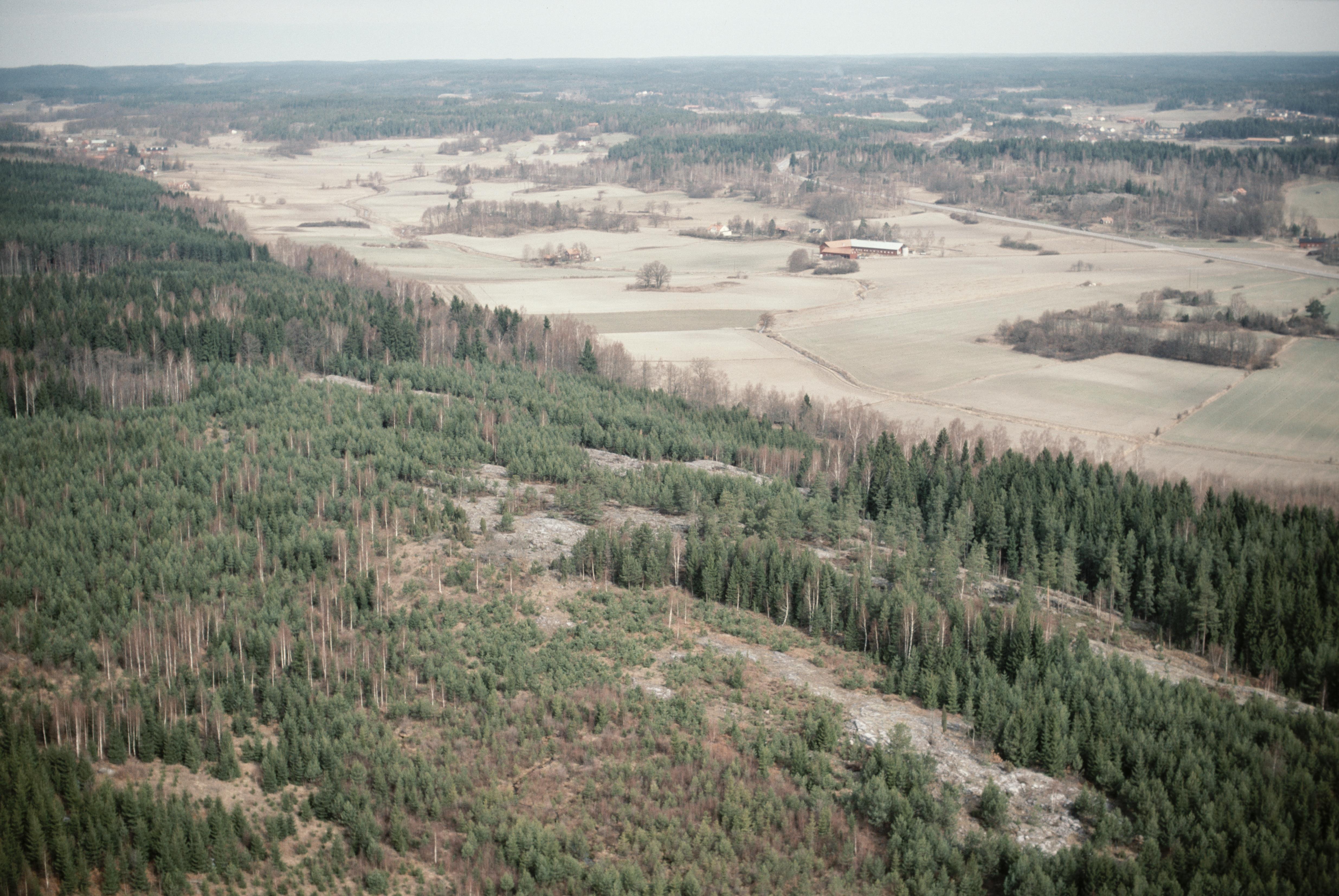 Beskrivning: Fornlämningsområde vid Baggetorp, söder om Gamleby tätort. I bildens övre del Ullevi och Härstad. Hällristningsområde med bl.a. RAÄnr Gamleby 710 vid bildens mitt. Bilden är tagen mot (väderstreck): N