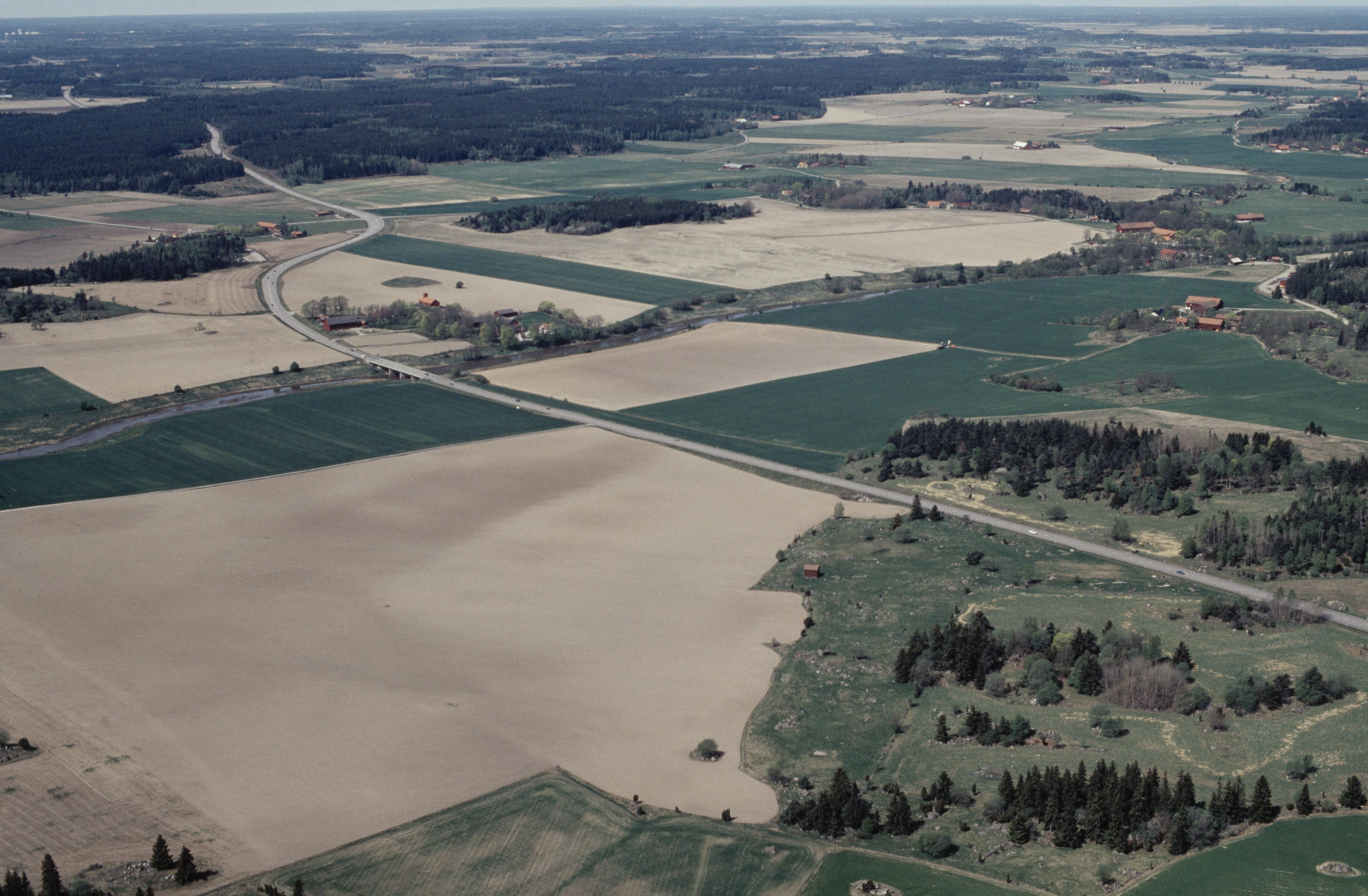 Beskrivning: Sagån markerar gränsen mellan Tillinge socken i landskapet Uppland i riksintresset U28 (i bildens nedre del) och Björksta socken i landskapet Västmanland i riksintresset C55 (i bildens övre del). Nere till höger Stensborg och gravfält med hällristningar RAÄnr Tillinge 2:1-2, 187:1 m.fl. Över bildens mitt Östanbro med Kung Östens hög RAÄnr Björksta 106:1 i Björksta socken, Västmanland. Bilden är tagen mot (väderstreck): NV