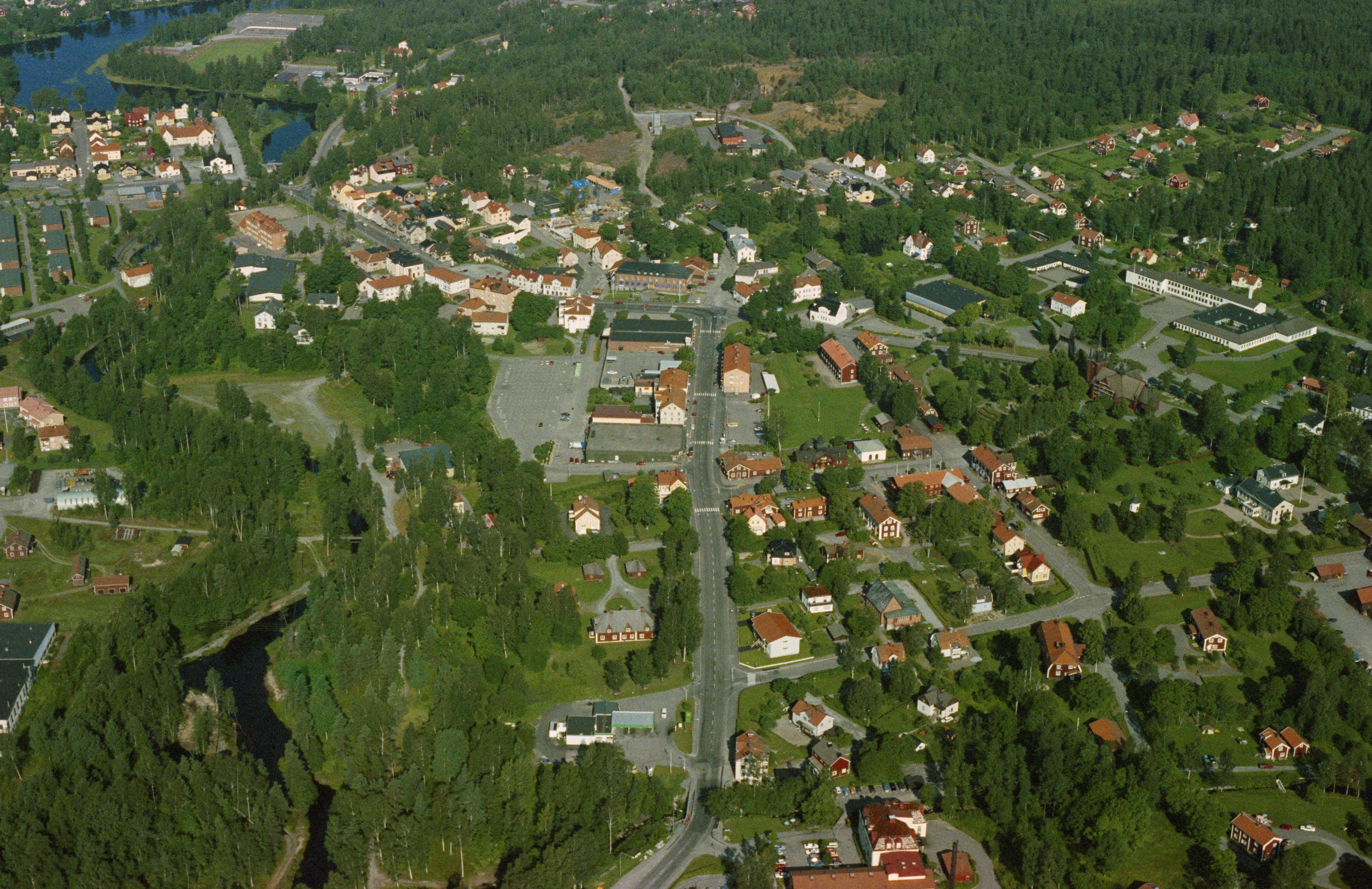 Beskrivning: Kopparbergs tätort vid Garhytteån. Till höger om bildens mitt Ljusnarsbergs kyrka. Till höger över bildens mitt bergmästarbostället och byggnadsminnet Stora gården RAÄnr Ljusnarsberg 95:1. Bilden är tagen mot (väderstreck): SSV