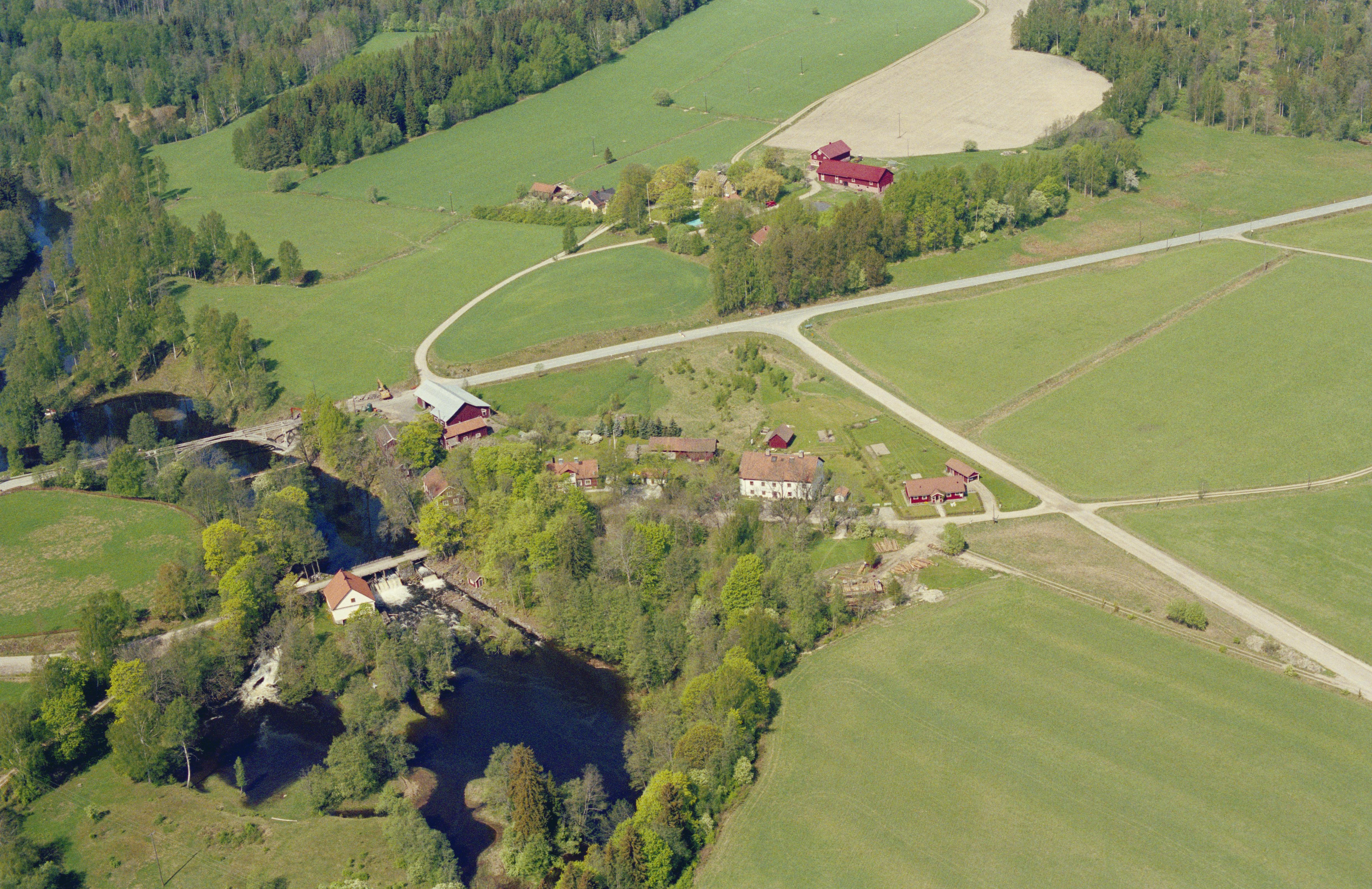 Beskrivning: Järleåns dalgång. Vid bildens mitt bro mellan byarna Nedre Järle (vid bildens mitt) och Övre Järle (till vänster, ej i bilden). Stadslager RAÄnr Nora 288:1, hytt- och hammarområde RAÄnr Nora 91:1, bro och träindustri Nora 90:1-2, kvarn Nora 724, Bilden är tagen mot (väderstreck): NV