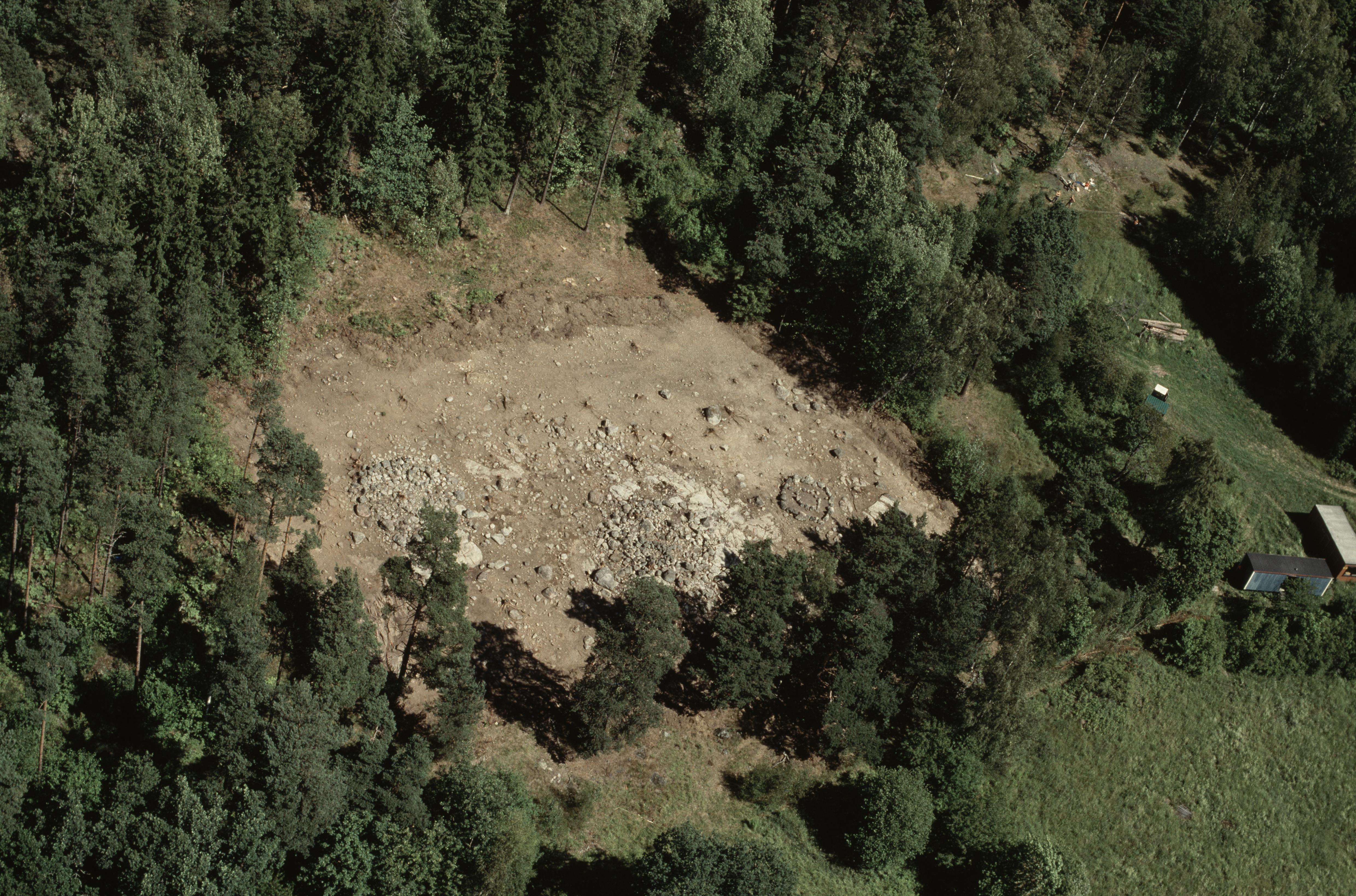 Beskrivning: Arkeologisk undersökning av boplats RAÄnr Botkyrka 371:1 i norra delen av området Vretarna vid sjön Aspen. Bilden är tagen mot (väderstreck): NV