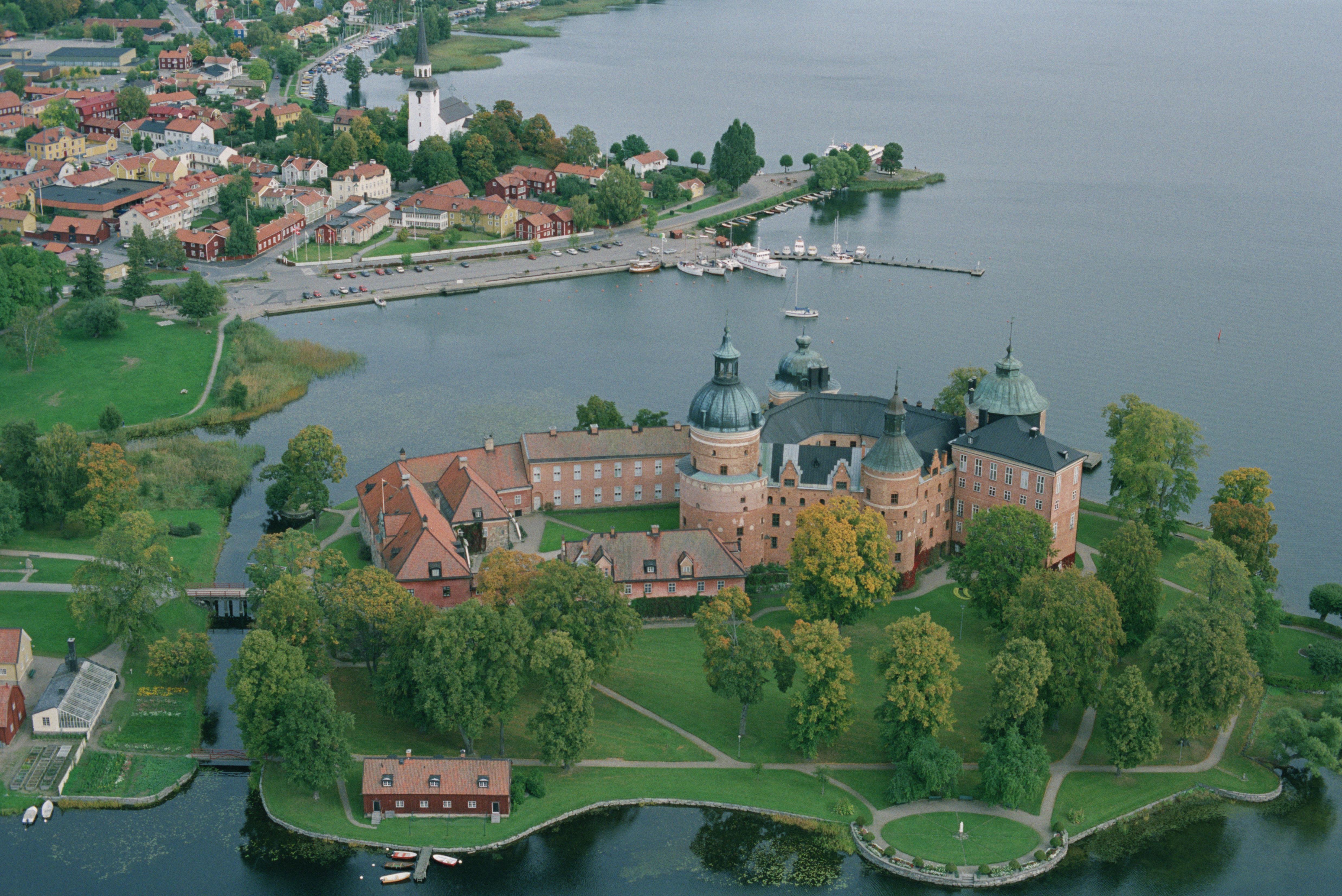 Beskrivning: Vid sockengränsen mellan Kärnbo och Mariefred (i bildens övre del). Gripsholms slott. Mariefreds kyrka uppe till vänster. Bilden är tagen mot (väderstreck): NO