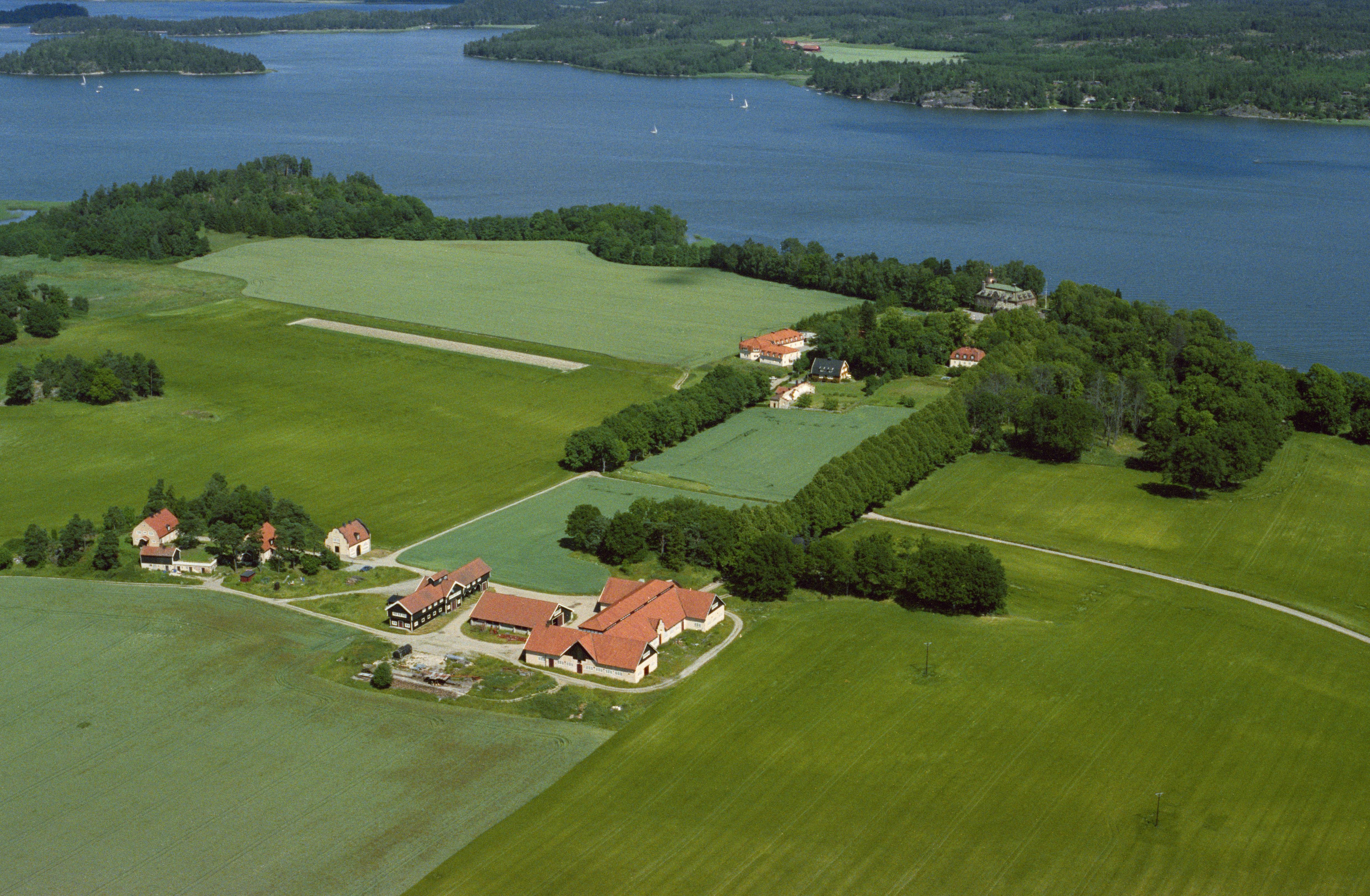 Beskrivning: Ängsholms herrgård (skrivs även Engsholms slott) vid Näslandsfjärden på Dåderö. I bildens övre del Näslandet i Grödinge socken. Bilden är tagen mot (väderstreck): NO