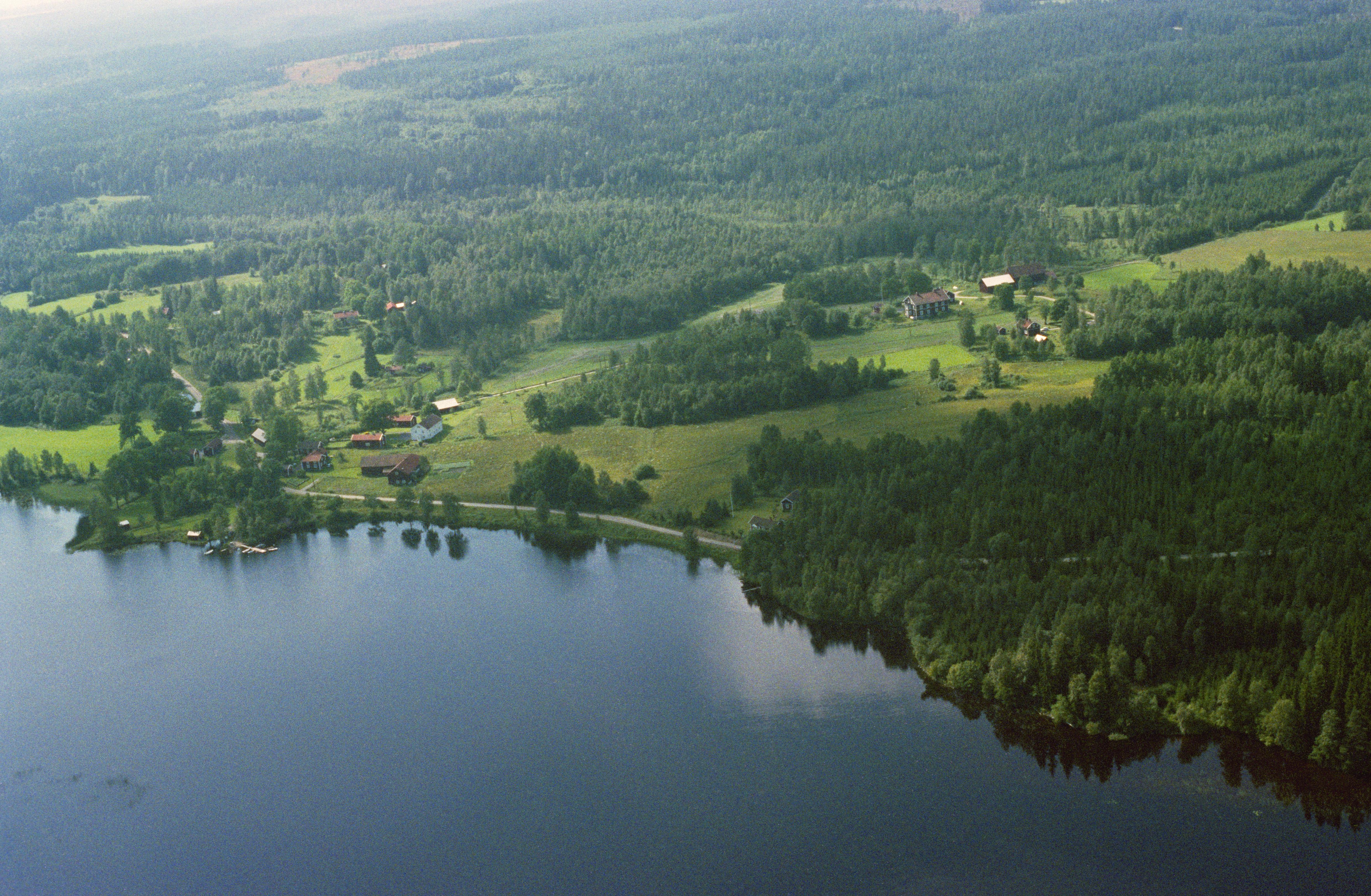 Beskrivning: Gamla Vikers bergmansby vid sjön Vikern. Hyttområde RAÄnr Viker 18:1 till vänster om bildens mitt. Bilden är tagen mot (väderstreck): SV