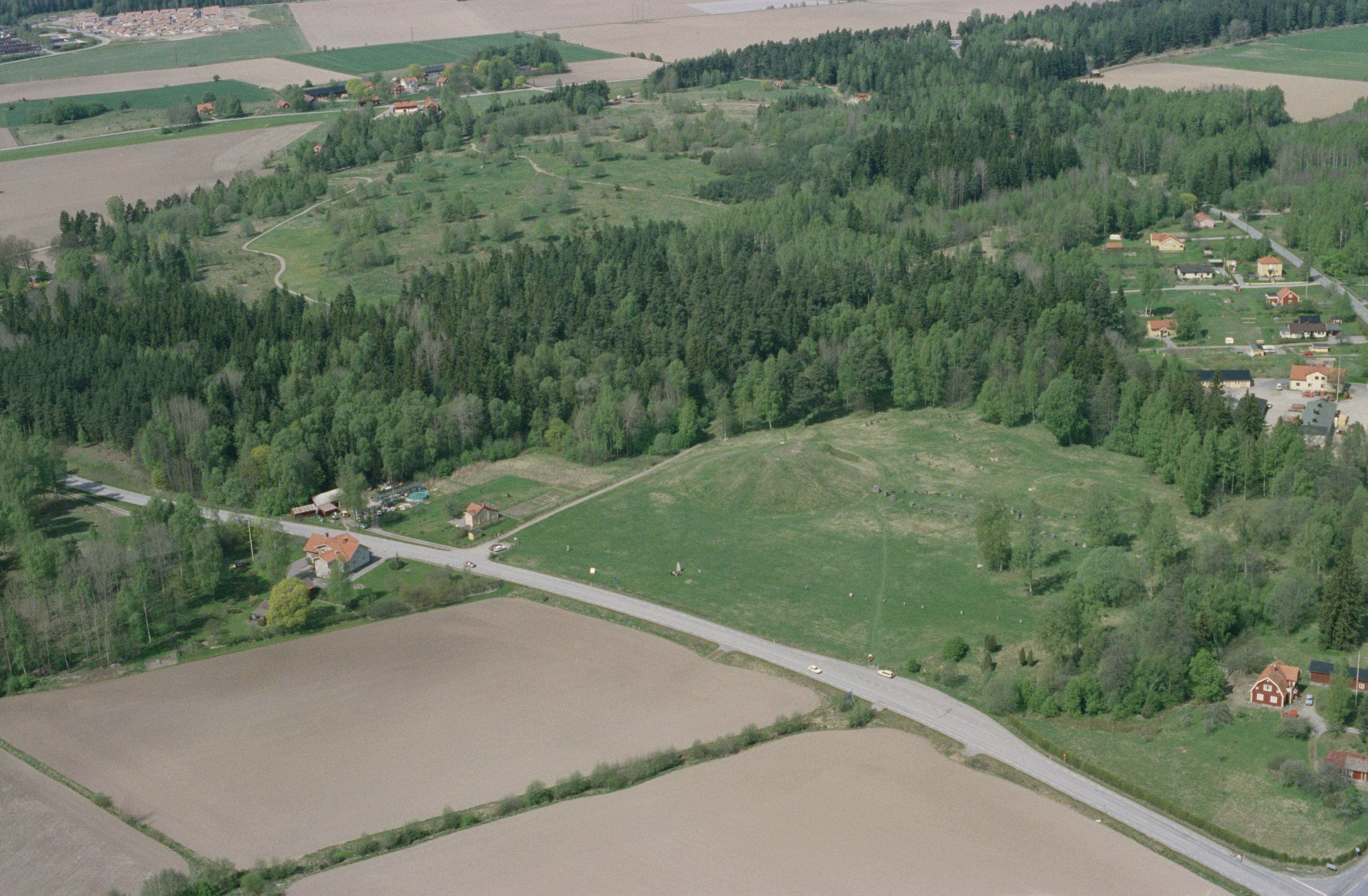 Beskrivning: Anmärkning (övrig): Riksintresse-nr/namn: U25 - Badelunda. Socken: Badelunda. Motivering: Fornlämningsmiljö, en av landets mest monumentala gravar och förhistoriskt vägmonument som visar på platsens betydelse i ett större rumsligt system. - Uttryck för riksintresset: Fornlämningsrik sträckning av Badelundaåsen genom öppet jordbrukslandskap med stort antal järnåldersgravfält. I Anundshögsområdet, omnämnt som tingsplats under medeltiden, finns en av landets största s.k. kungshögar "Anundshög", ca 60 m i diameter och 12 m hög. Intill denna två skeppssättningar, ca 50 m långa och en märklig runsten med text som förknippas med ynglingakungen Anund. Härifrån går ned mot ett vadställe, en lång rad stenar som också nä(…) Texten i detta fält har förkortats vid migrering till e-arkivet. Se filbilagan extra.xml för fullständig information under note_archivist. Beskrivning: Fornlämningsområdet Anundshög RAÄnr Västerås 431:1 vid Badelundaåsen i Badelunda. I området finns storhög, skeppssättningar, väglämningar och runsten m.m. Bilden är tagen mot (väderstreck): NV Fotosyfte: Flygbildsdokumentation