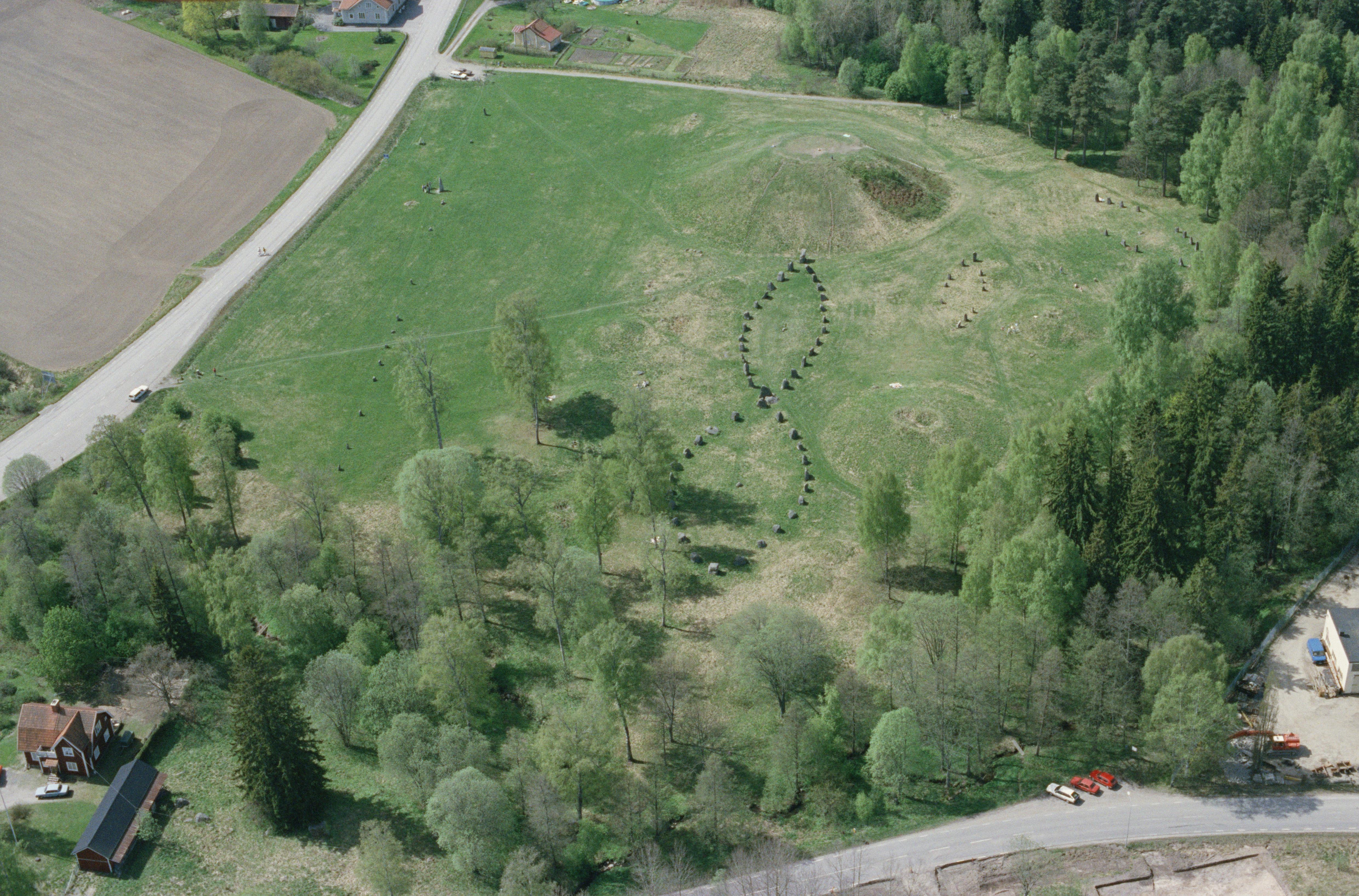 Beskrivning: Anmärkning (övrig): Riksintresse-nr/namn: U25 - Badelunda. Socken: Badelunda. Motivering: Fornlämningsmiljö, en av landets mest monumentala gravar och förhistoriskt vägmonument som visar på platsens betydelse i ett större rumsligt system. - Uttryck för riksintresset: Fornlämningsrik sträckning av Badelundaåsen genom öppet jordbrukslandskap med stort antal järnåldersgravfält. I Anundshögsområdet, omnämnt som tingsplats under medeltiden, finns en av landets största s.k. kungshögar "Anundshög", ca 60 m i diameter och 12 m hög. Intill denna två skeppssättningar, ca 50 m långa och en märklig runsten med text som förknippas med ynglingakungen Anund. Härifrån går ned mot ett vadställe, en lång rad stenar som också nä(…) Texten i detta fält har förkortats vid migrering till e-arkivet. Se filbilagan extra.xml för fullständig information under note_archivist. Beskrivning: Fornlämningsområdet Anundshög RAÄnr Västerås 431:1 vid Badelundaåsen i Badelunda. I området finns storhög, skeppssättningar, väglämningar och runsten m.m. Bilden är tagen mot (väderstreck): SV Fotosyfte: Flygbildsdokumentation