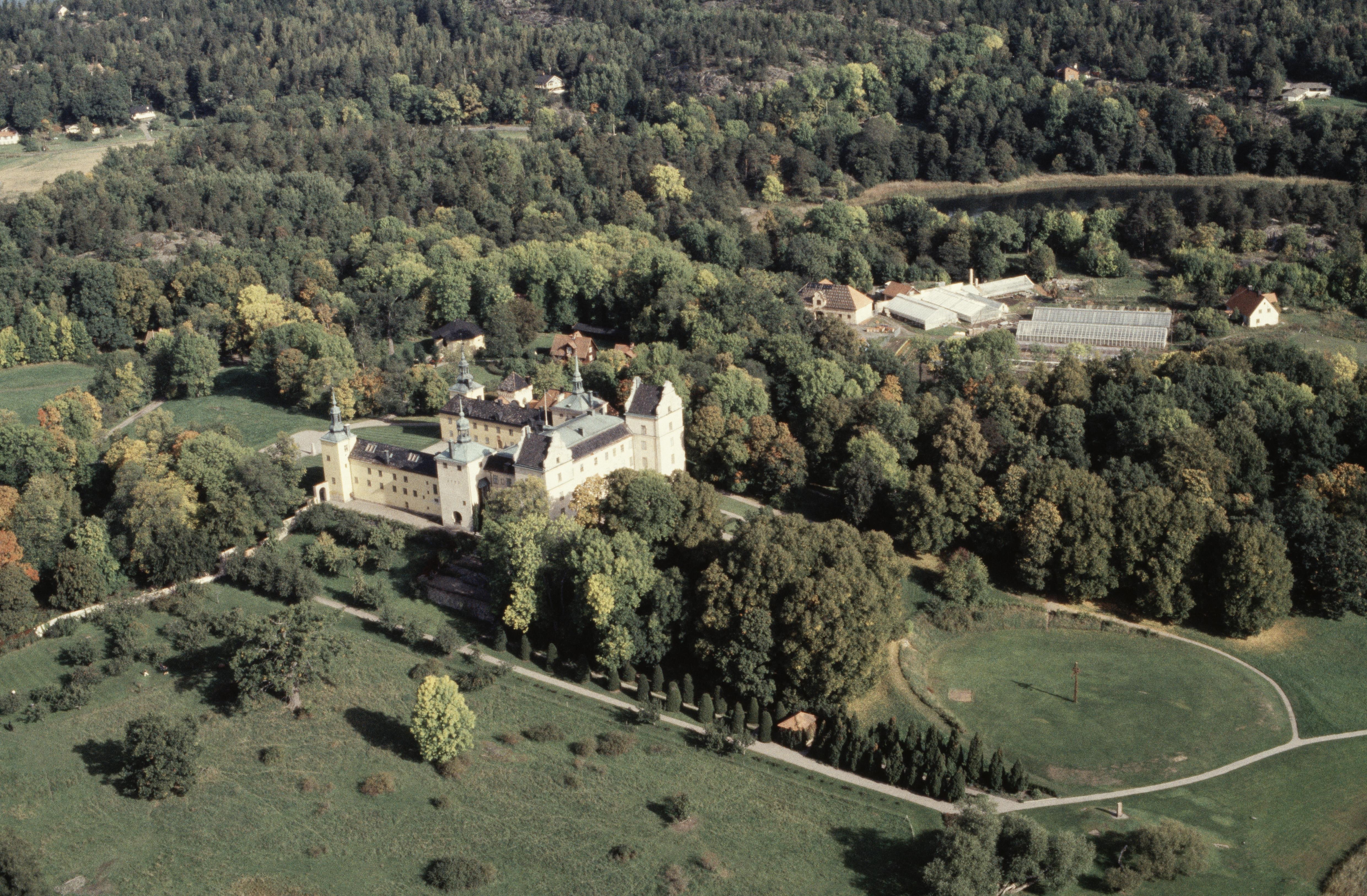 Beskrivning: Tyresö slott (byggnadsminne RAÄnr Tyresö 37:1) vid Kalvfjärden. Bilden är tagen mot (väderstreck): N
