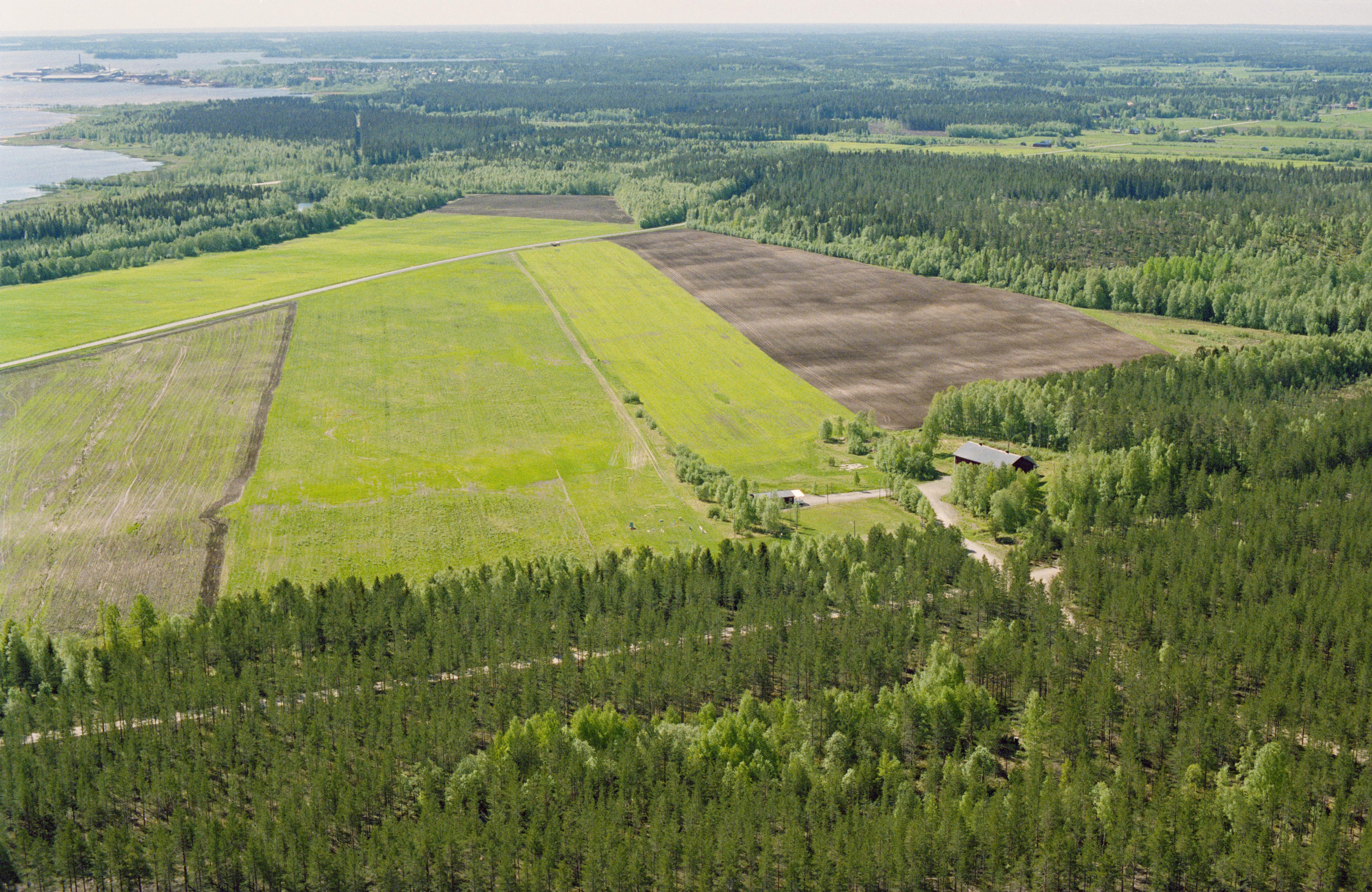 Beskrivning: Olofsfors gamla flygfält i södra delen av Olofsfors järnbruk. Vid vägen över bildens mitt vägmärke RAÄnr Nordmaling 203:1. Leduåns utlopp i Nordmalingsfjärden i bildens övre del. Bilden är tagen mot (väderstreck): SO