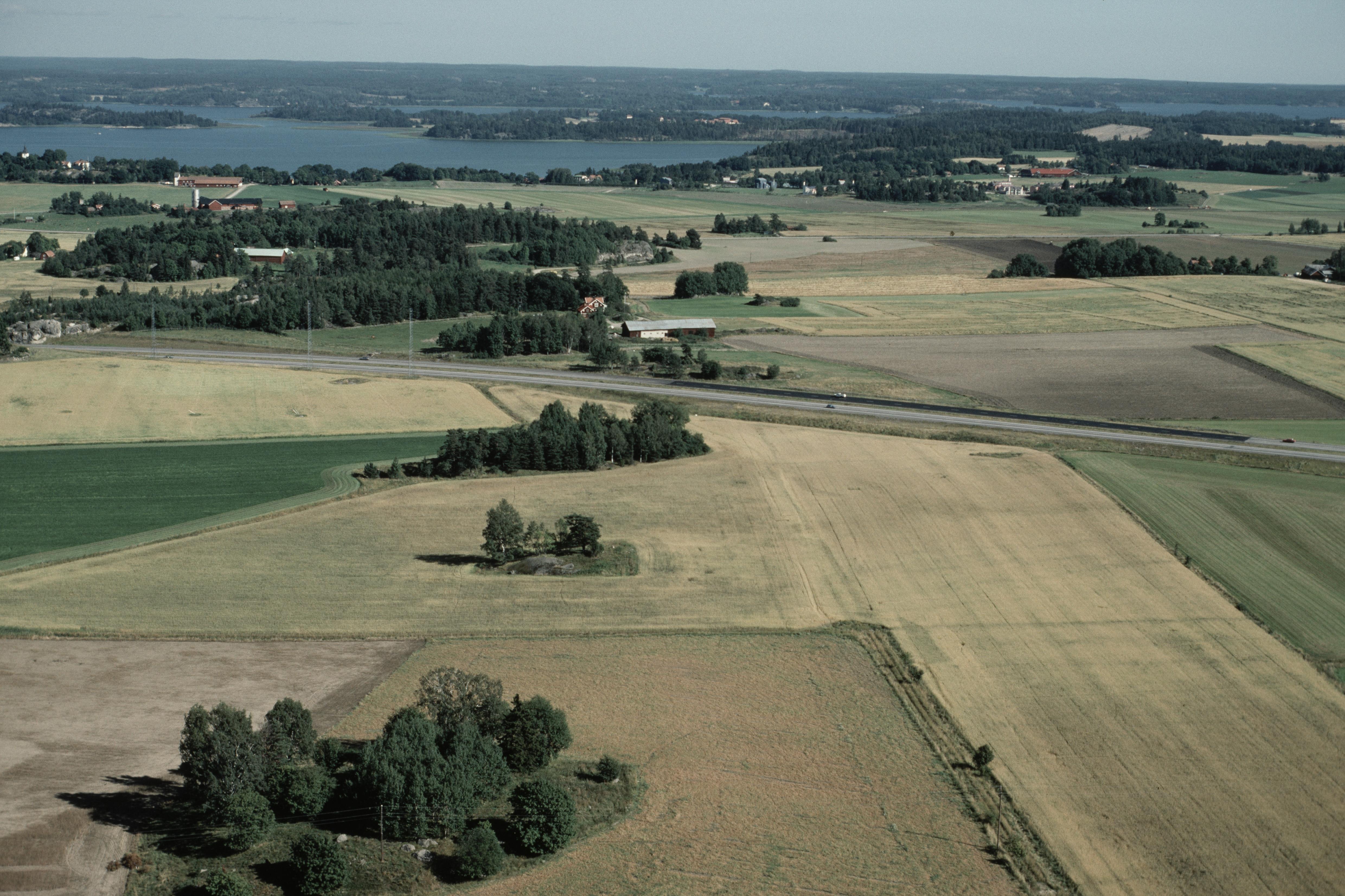 Beskrivning: Hällristningshällar i åkerholmar vid Linga by. RAÄnr Överjärna 119:1 vid bildens mitt. Över bildens mitt hällristningar RAÄnr Ytterjärna 248:1 och 318 vid Stensta by i Ytterjärna socken. Järnafjärden i bildens övre del. Bilden är tagen mot (väderstreck): Ö