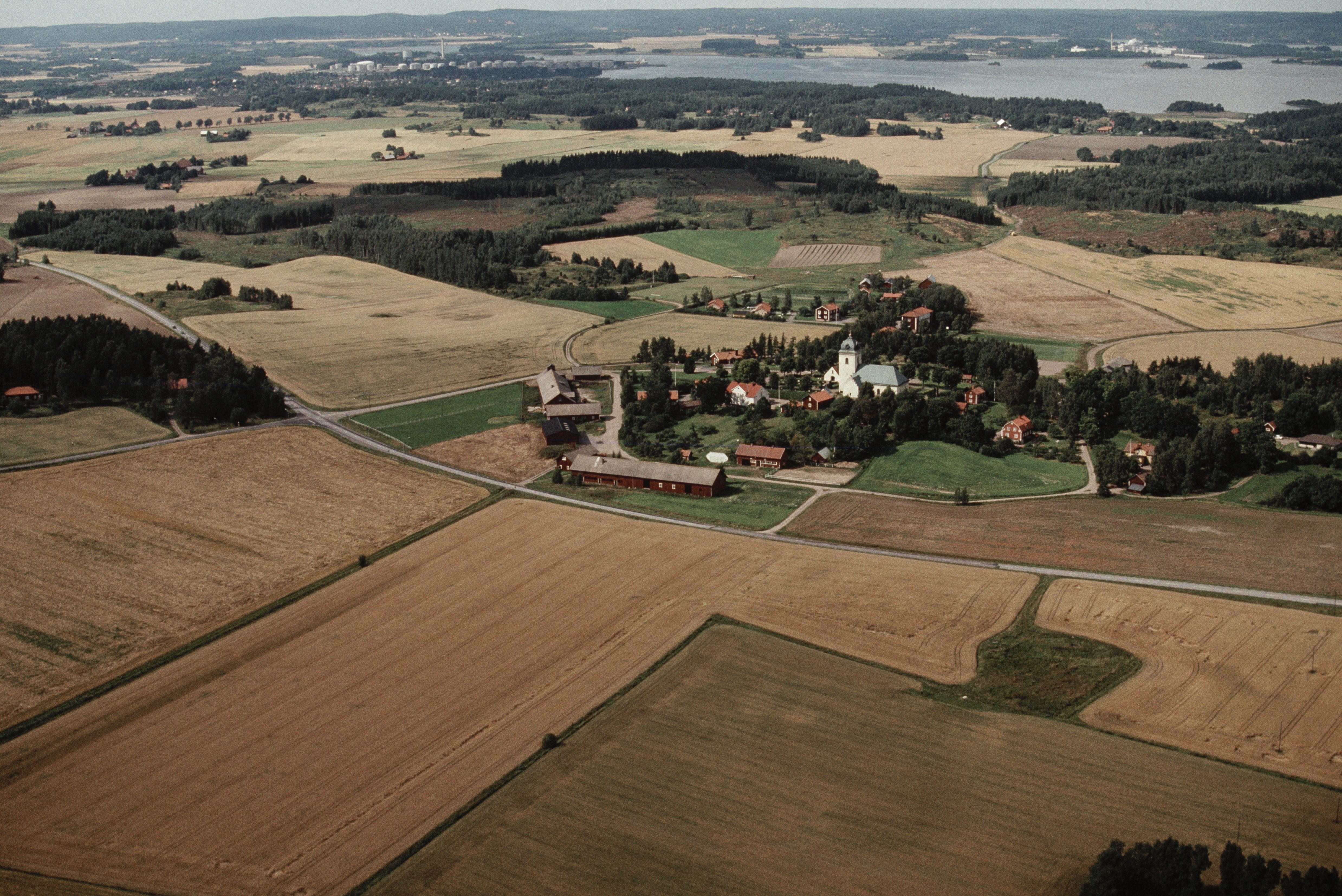 Beskrivning: Dagsbergs kyrka och kyrkby. Bilden är tagen mot (väderstreck): NV
