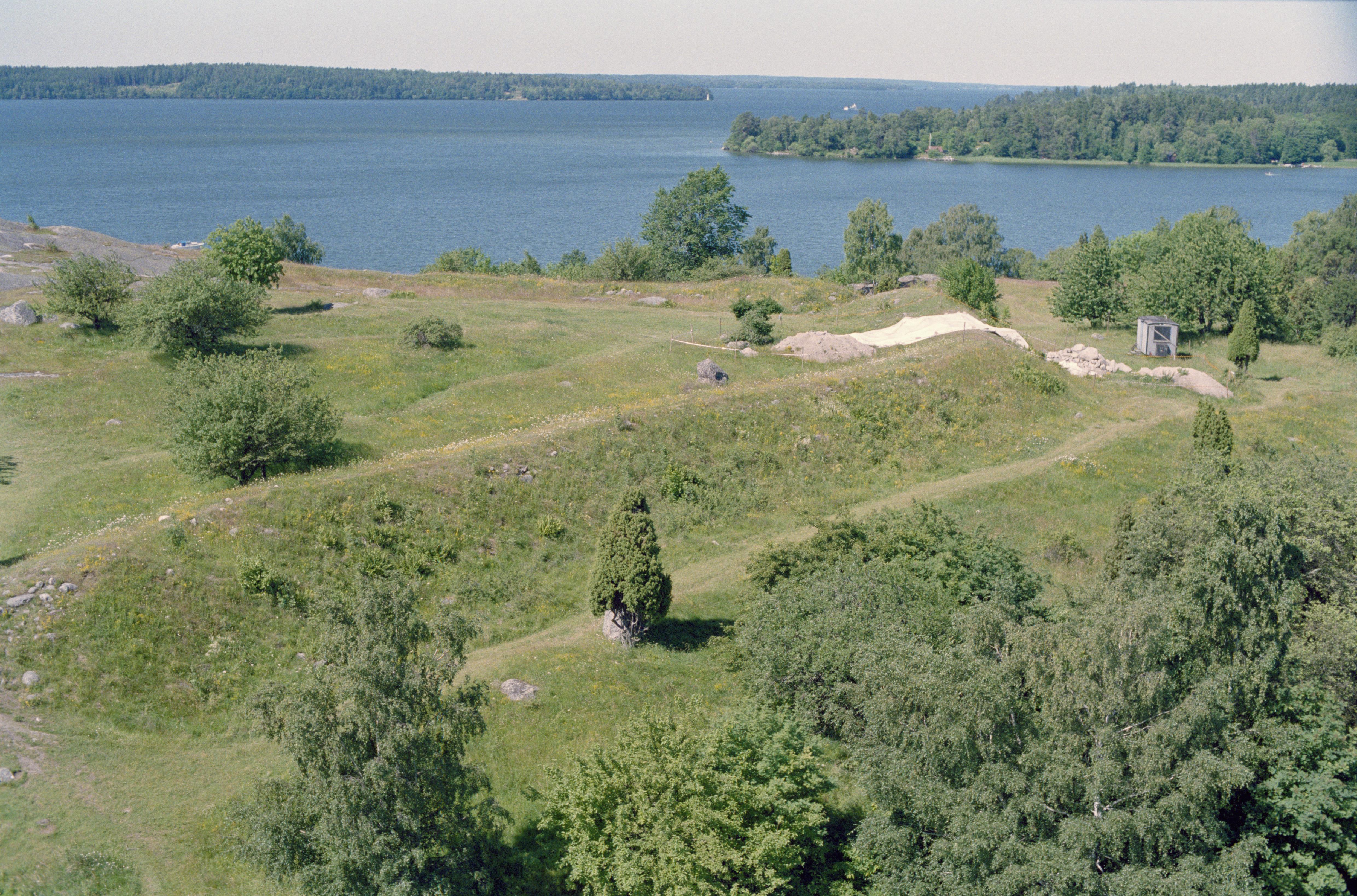 Beskrivning: Anmärkning (övrig): Riksintresse-nr/namn: AB21 och AB22 - Adelsö - Björkö-Birka. Socken: Adelsö. Motivering: Fornlämningsmiljö med kungsgården och Alsnö hus på Adelsö, och på Björkö platsen för Sveriges första stadsbildning (Birka), som visar på östra Mälardalens centrala roll för det svenska riket under järnåldern och den tidiga medeltiden, den politiska och ekonomiska makten och regionens handelsutbyte med internationell räckvidd. - Uttryck för riksintresset: På Adelsö Hovgårdskomplexet, som i storhögar, flera stora gravfält, stora husgrundsterrasser, hamnanläggning, fornborgen och en runsten samt i 1100-talskyrkan och ruinen av Alsnö hus visar på järnålderns kungsgård och dess fortsättning under medeltiden.(…) Texten i detta fält har förkortats vid migrering till e-arkivet. Se filbilagan extra.xml för fullständig information under note_archivist. Beskrivning: Fornlämningsområdet Birka på Björkö i Mälaren. Besökare på stigar vid gravfält Borgs hage RAÄnr Adelsö 35:1 och Ansgarsmonumentet i fornborg Borg RAÄnr Adelsö 34:1. Uppe till höger arkeologisk undersökning i fornborgsvallen. Bilden är tagen mot (väderstreck): VNV Fotosyfte: Flygbildsdokumentation