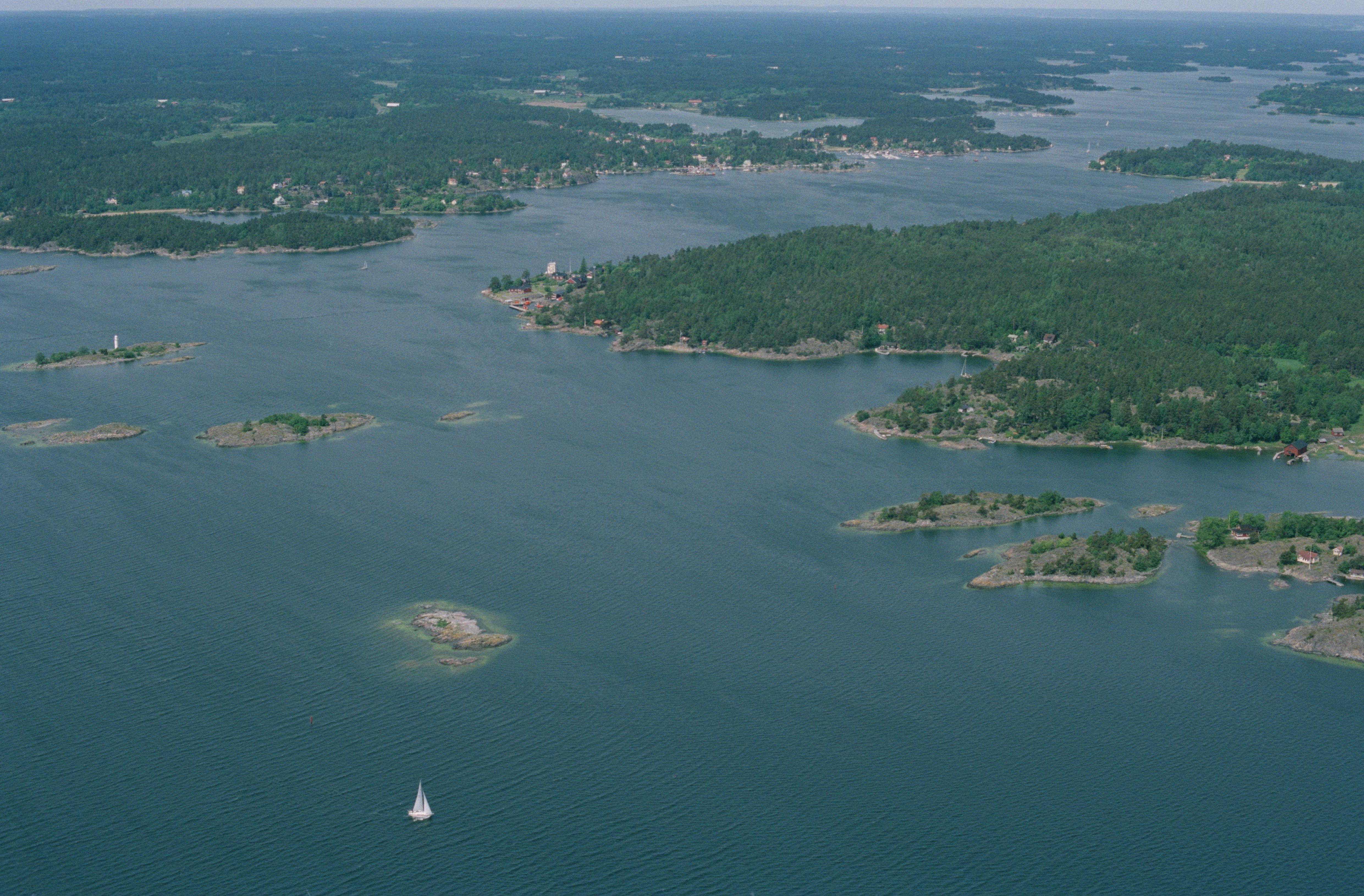 Beskrivning: Vikbolandet. I bildens övre del röse på Sundsholmen RAÄnr Jonsberg 14:1 vid orten Arkösund. Kuggviksskären till vänster om bildens mitt, Ön Arkö i Bråviksfjärden till höger. Bilden är tagen mot (väderstreck): VSV