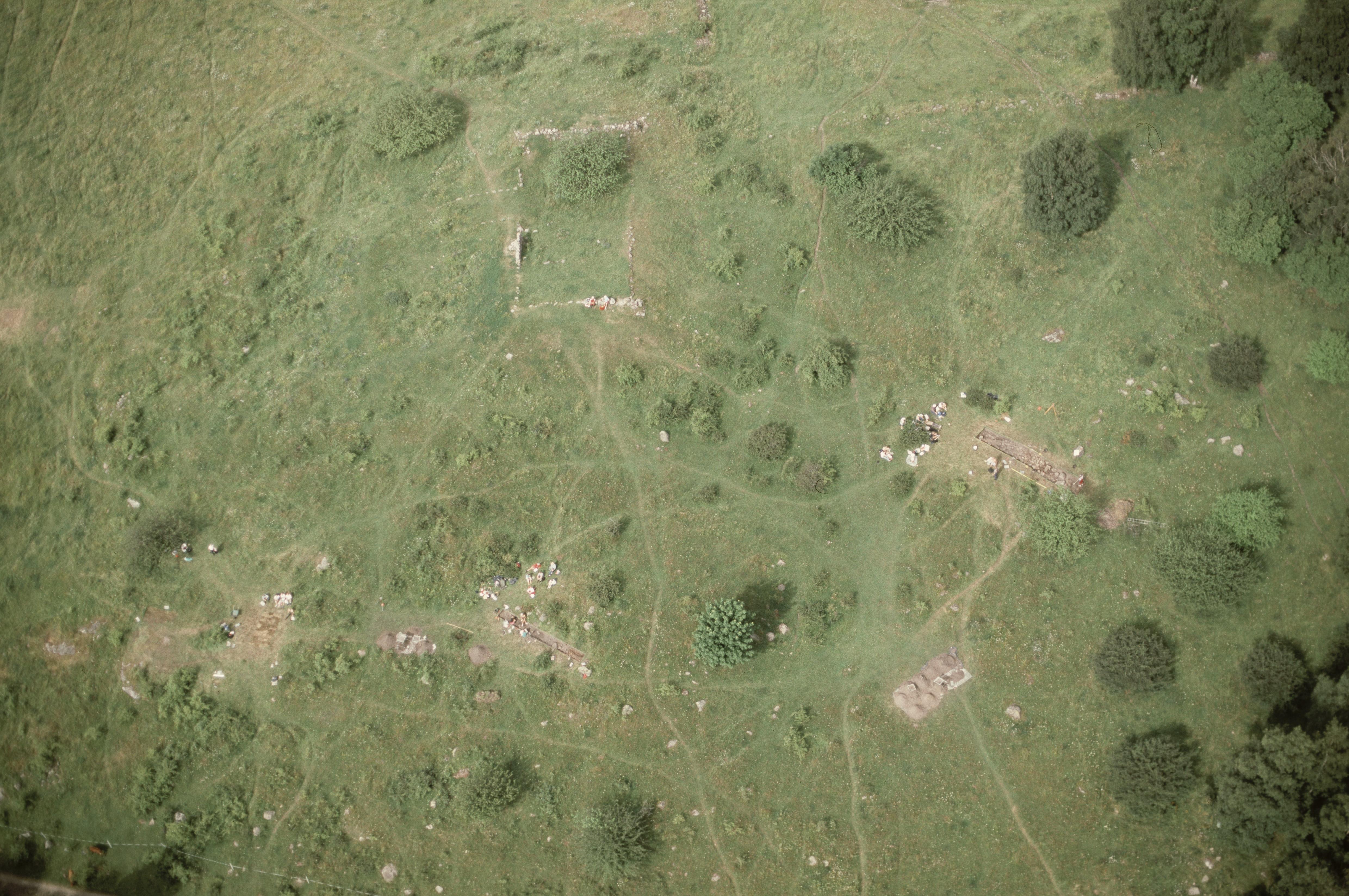 Beskrivning: Fornlämningsområdet Hovgården RAÄnr Adelsö 46:2 på Adelsön vid Hovgårdsfjärden i Mälaren. Arkeologisk undersökning i Alsnö hus RAÄnr Adelsö 47:1, stensättningar Adelsö 236 och 237 m.fl. Bilden är tagen mot (väderstreck): V