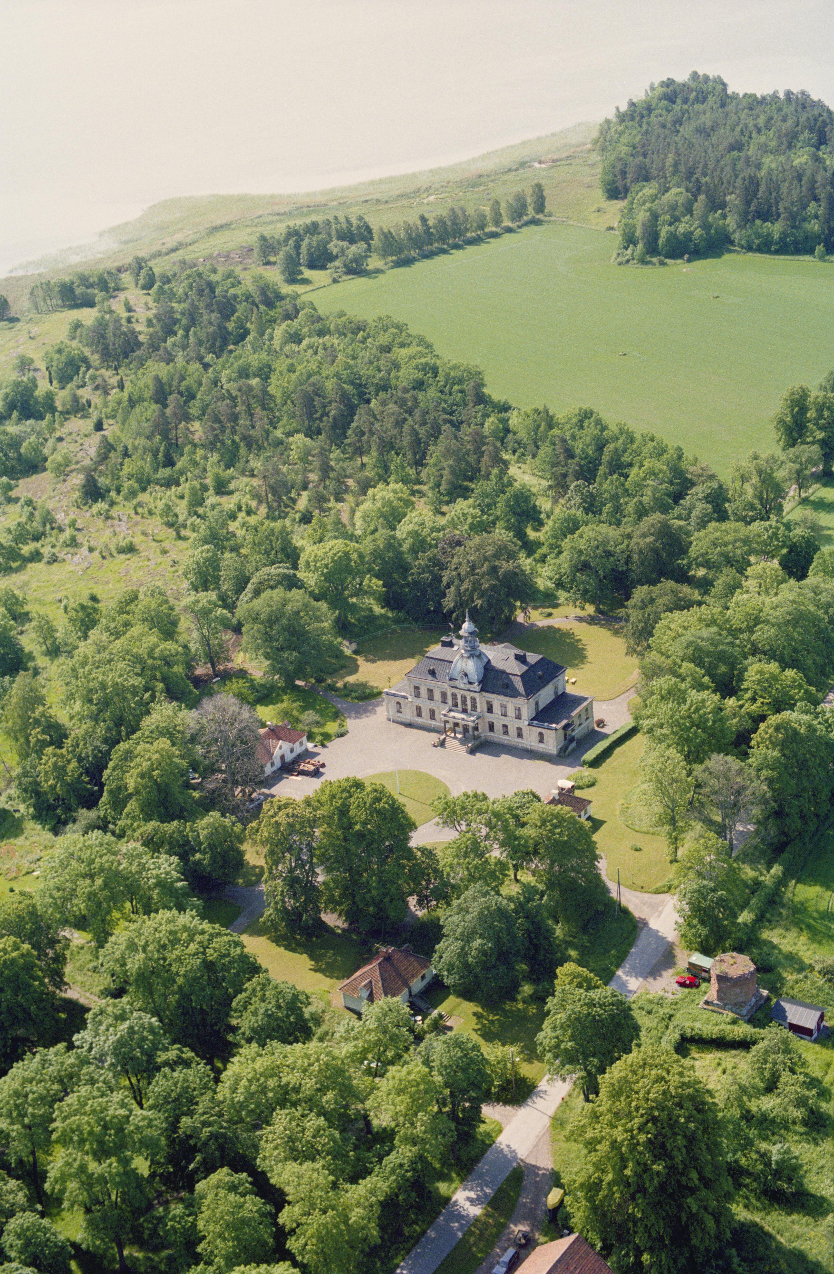 Beskrivning: Brogårds herrgård (skrivs även Bro Hof slott). Herrgården har underjordiska gångar till flygelbyggnaderna RAÄnr Bro 91:1. Brogårds herrgård (skrivs även Bro Hof slott). Herrgården har underjordiska gångar till flygelbyggnaderna RAÄnr Bro 91:1. I bildens övre del Brofjärden i Mälaren. Bilden är tagen mot (väderstreck): SSO