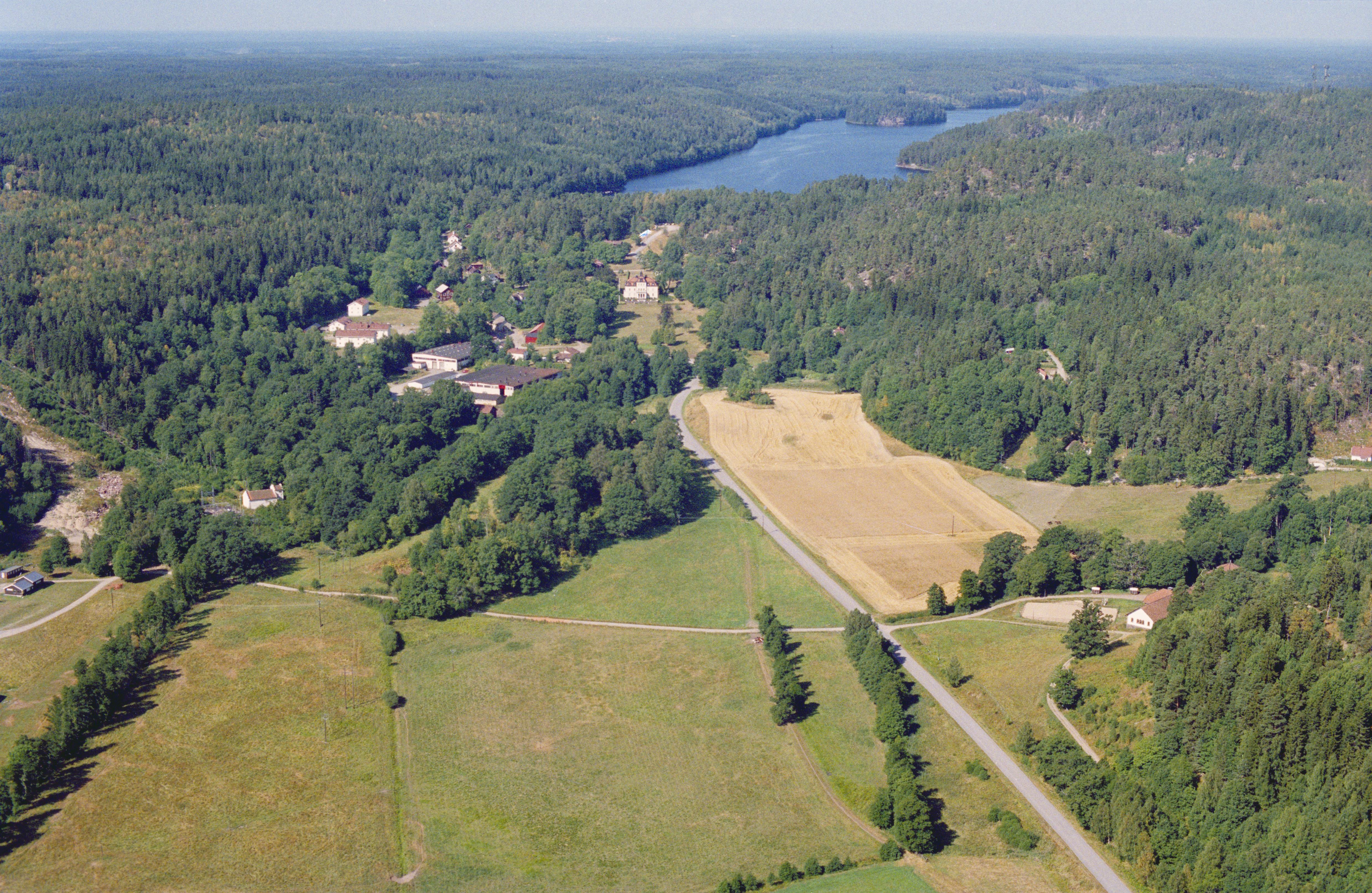 Beskrivning: Hultsbruks herrgård RAÄnr Kvillinge 49:1. I bildens övre del Ågelsjön. Uppe till höger fornborg RAÄnr Kvillinge 39:1. Bilden är tagen mot (väderstreck): V