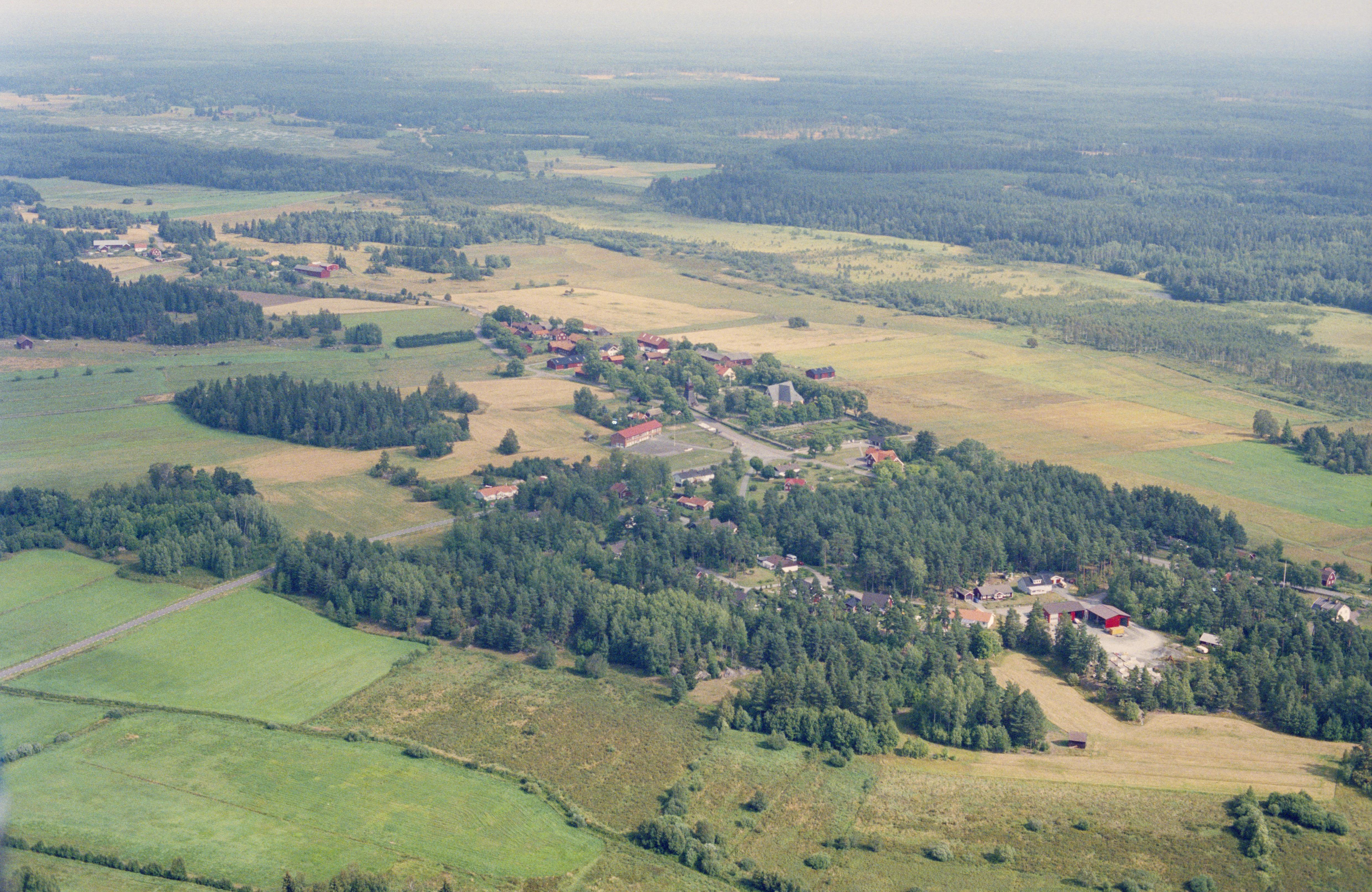 Beskrivning: Films kyrka och kyrkby i Broåns dalgång. Vid kyrkan bytomt RAÄnr Film 254:1 m.fl. Bilden är tagen mot (väderstreck): ONO