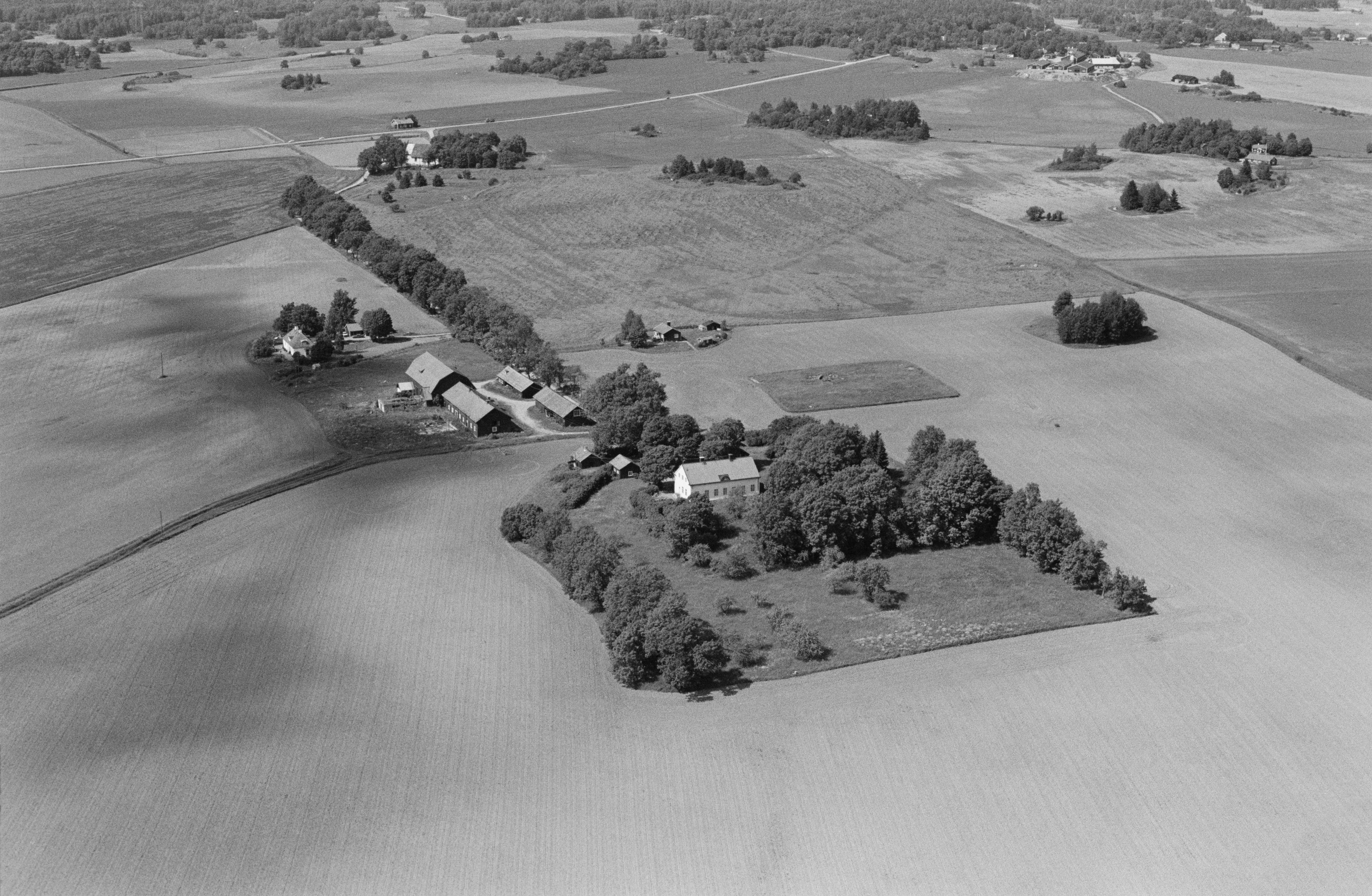 Beskrivning: Haga gård. Till vänster över bildens mitt Haga kyrka. Vid kyrkan bytomt RAÄnr Haga 30:1 och 58:1, Bilden är tagen mot (väderstreck): N