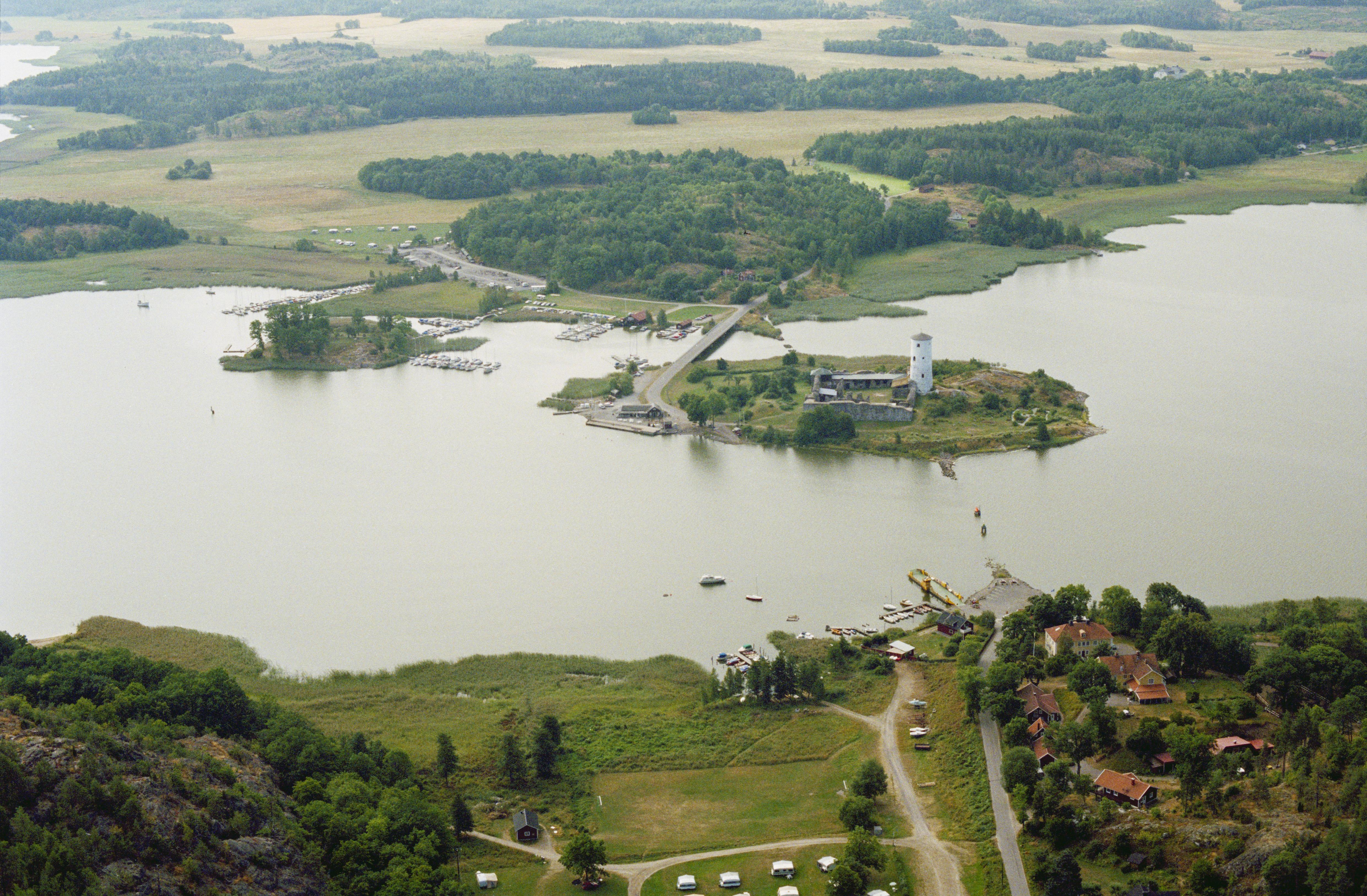 Beskrivning: Havsviken Slätbaken. Vy från Norrkrog i Östra Ny socken mot Stegeborgs slottsruin RAÄnr Skällvik 222:1. Bilden är tagen mot (väderstreck): S