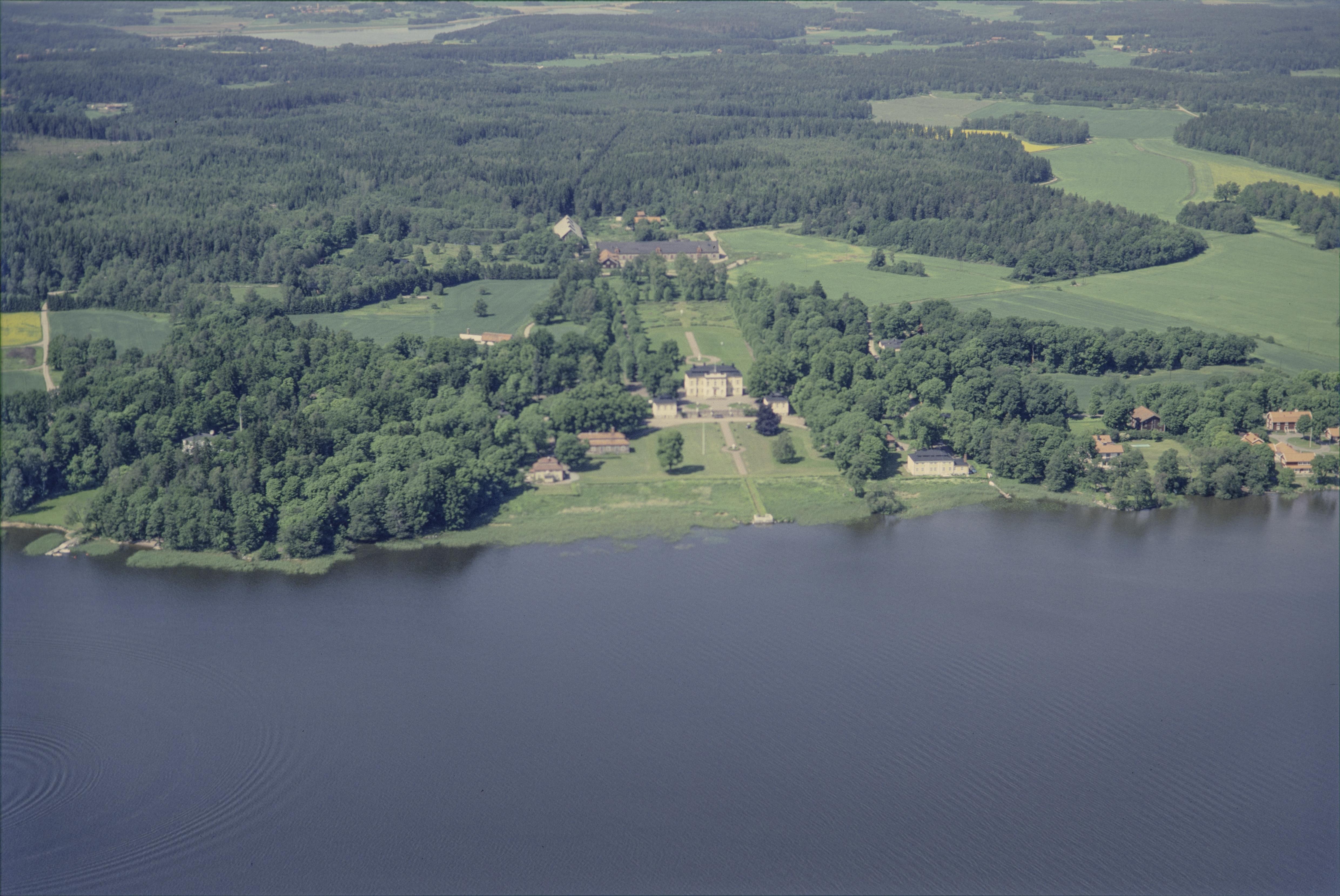 Beskrivning: Steninge slott byggnadsminne RAÄnr Husby-Ärlinghundra 101:1 vid Skarven / Sigtunafjärden i Mälaren. Bilden är tagen mot (väderstreck): NNV
