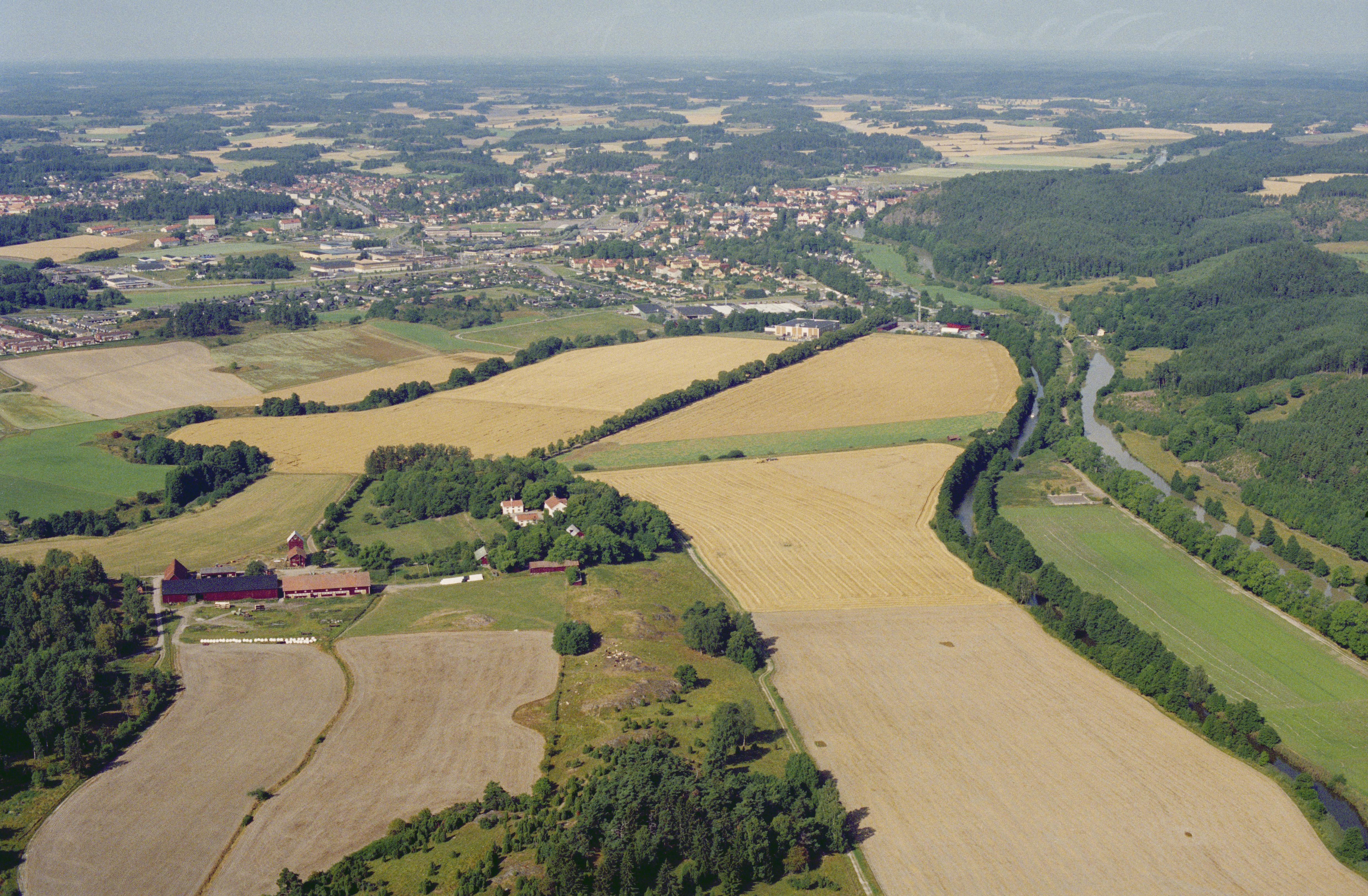 Beskrivning: Vid bildens mitt stenkrets RAÄnr Skönberga 94:1 vid Viggeby gård mellan Tvärån och till höger Göta kanal. I bildens övre del socknet och staden Söderköping. Bilden är tagen mot (väderstreck): V