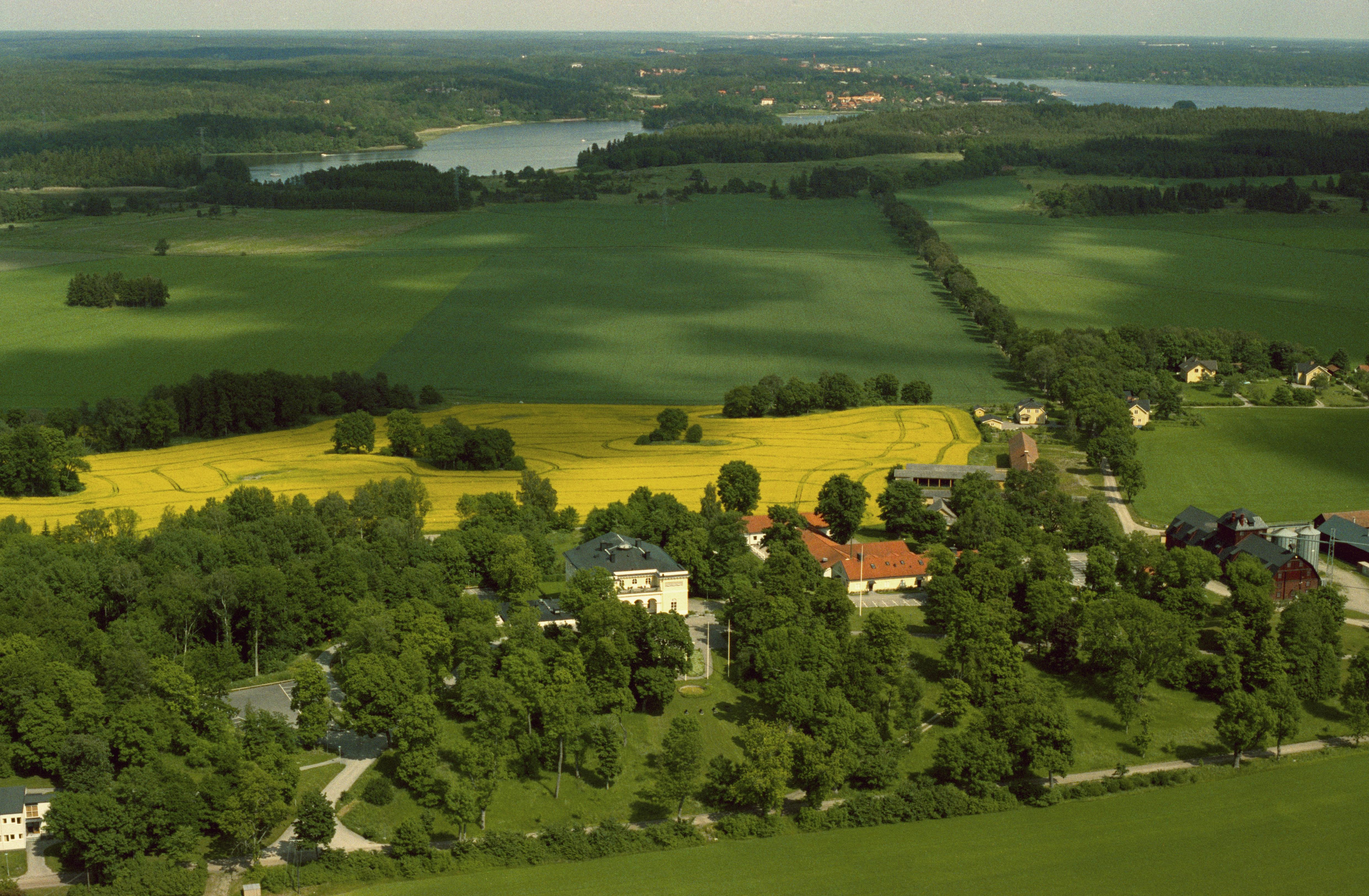 Beskrivning: Aske herrgård / Aske kursgård - byggnadsminne RAÄnr Håtuna 109:1. I bildens övre del Sigtuna. Bilden är tagen mot (väderstreck): ONO