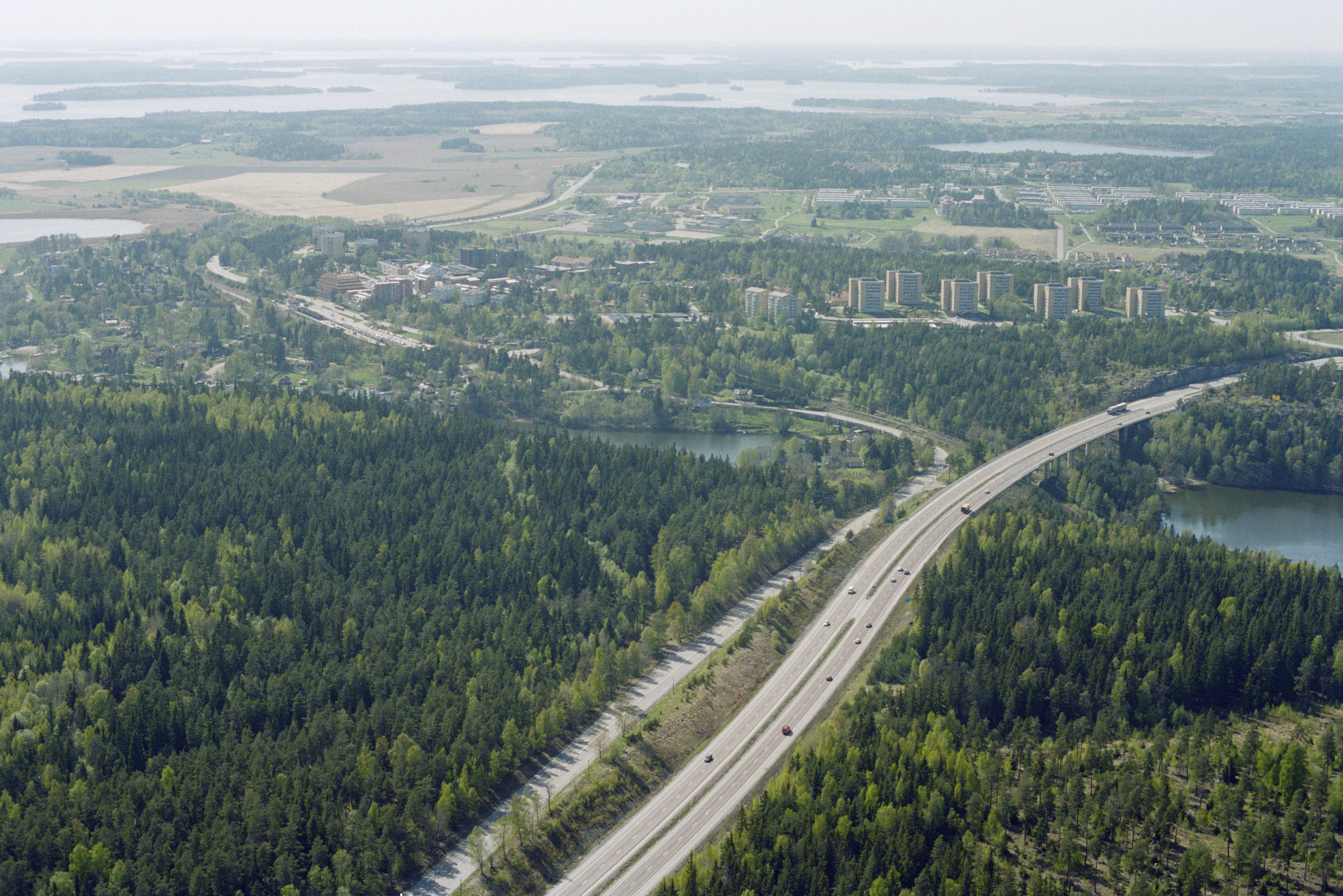 Beskrivning: Väg E18 vid Dalkarlsbacken på Stäksön vid Görväln i Mälaren. Färdvägar RAÄnr Kungsängen 134:1 och 181:1. I bildens övre del tätorten Kungsängen. Bilden är tagen mot (väderstreck): SV