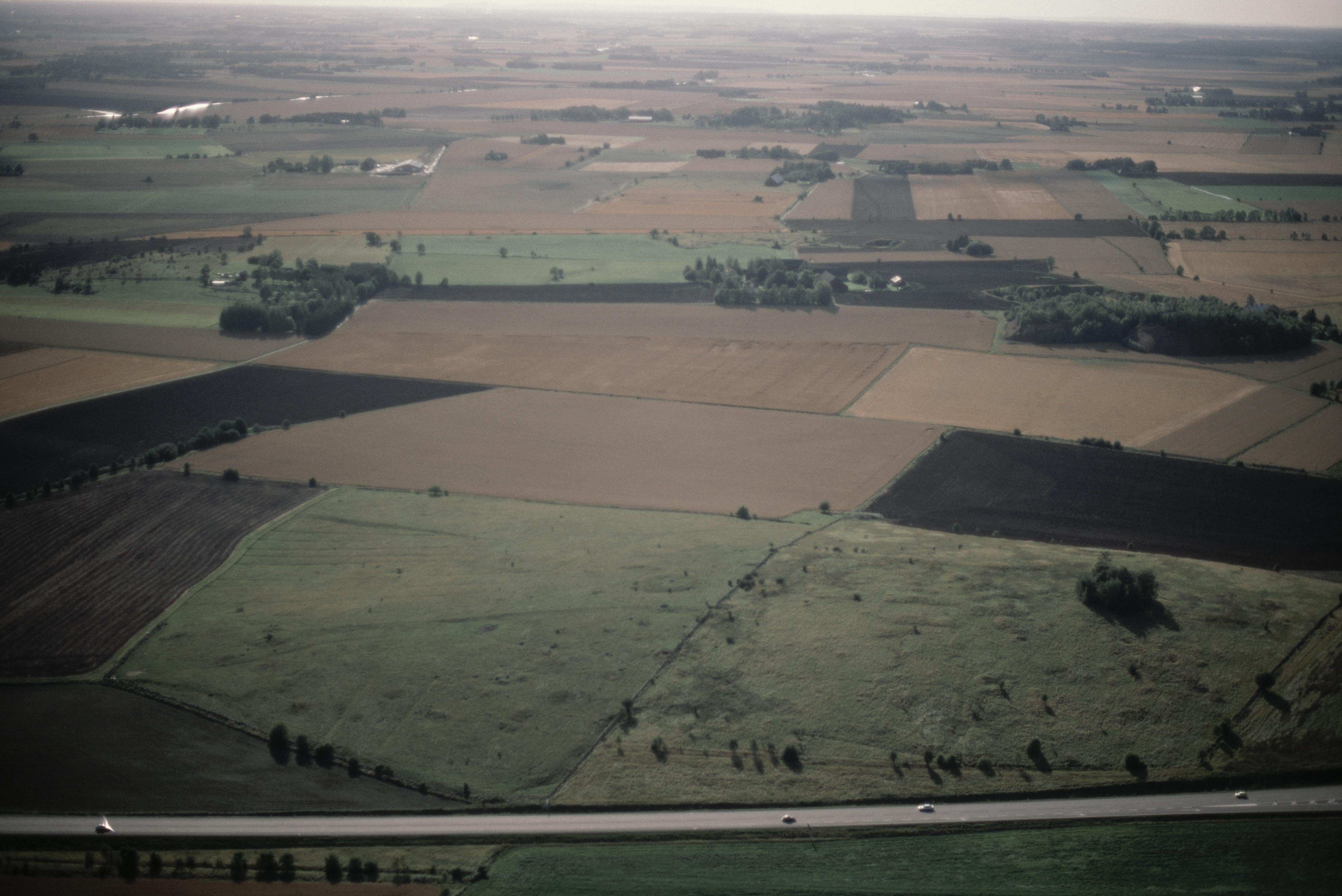 Beskrivning: Gravfält RAÄnr Vreta kloster 14:1 och fossil åker Vreta kloster 14:5 vid Bjälösa. Även riksintresse KE37. Bilden är tagen mot (väderstreck): SSV