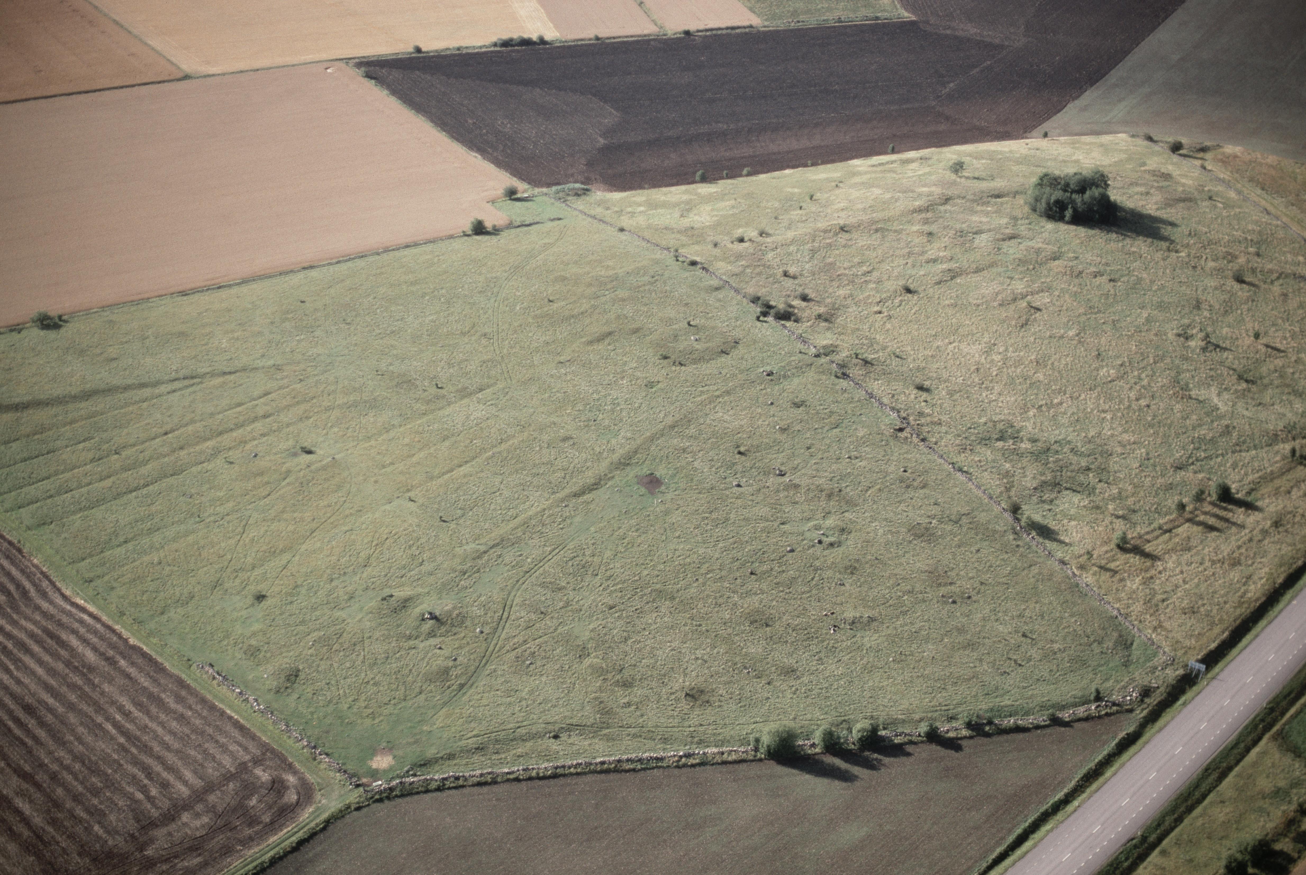 Beskrivning: Gravfält RAÄnr Vreta kloster 14:1 och fossil åker Vreta kloster 14:5 vid Bjälösa. Även riksintresse KE37. Bilden är tagen mot (väderstreck): NV