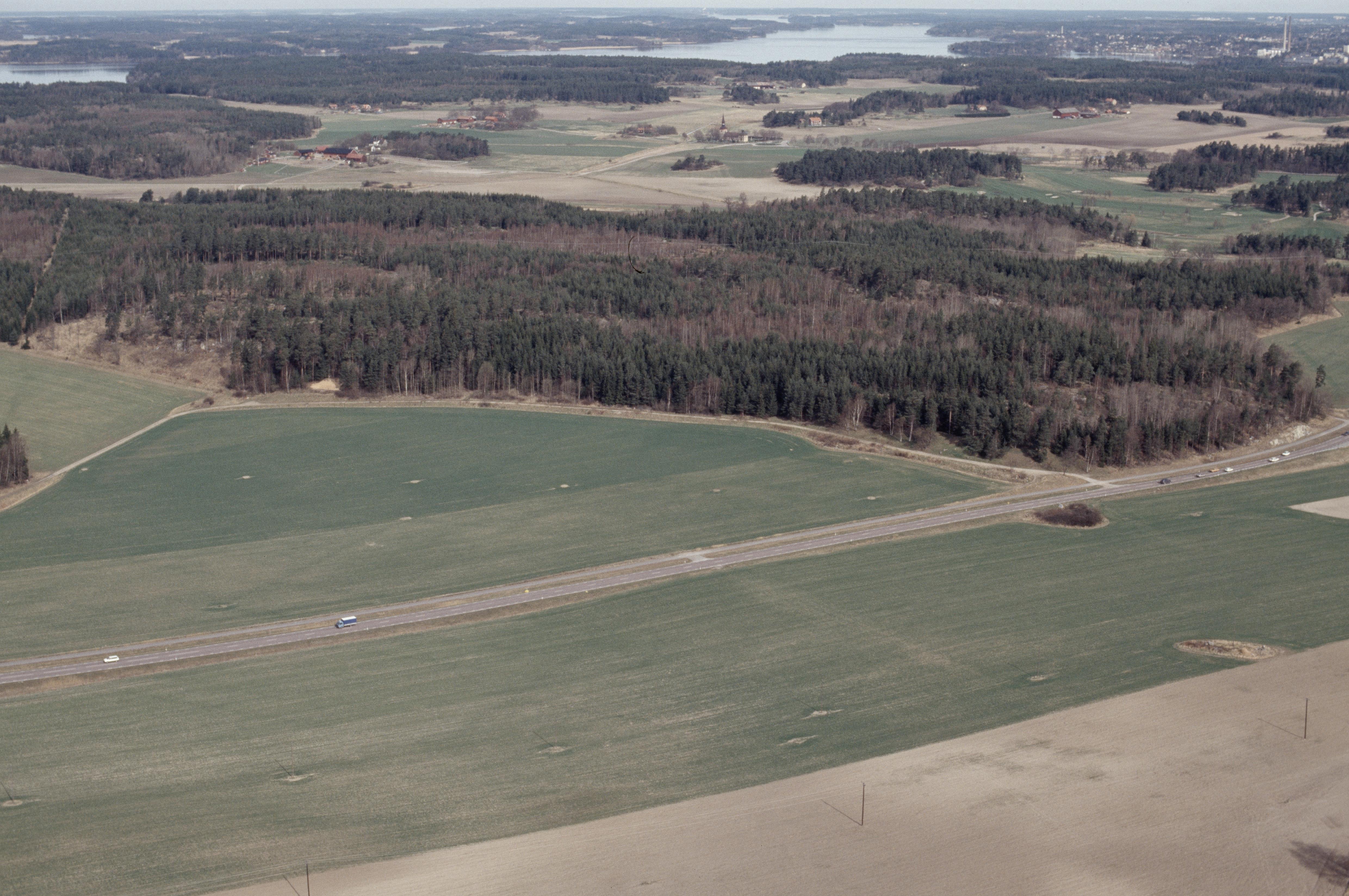 Beskrivning: Vid bildens mitt gravfält RAÄnr Lovö 50:1 m.fl. I bildens övre del Lovöns golfbana och Lovö kyrka. Bilden är tagen mot (väderstreck): NV