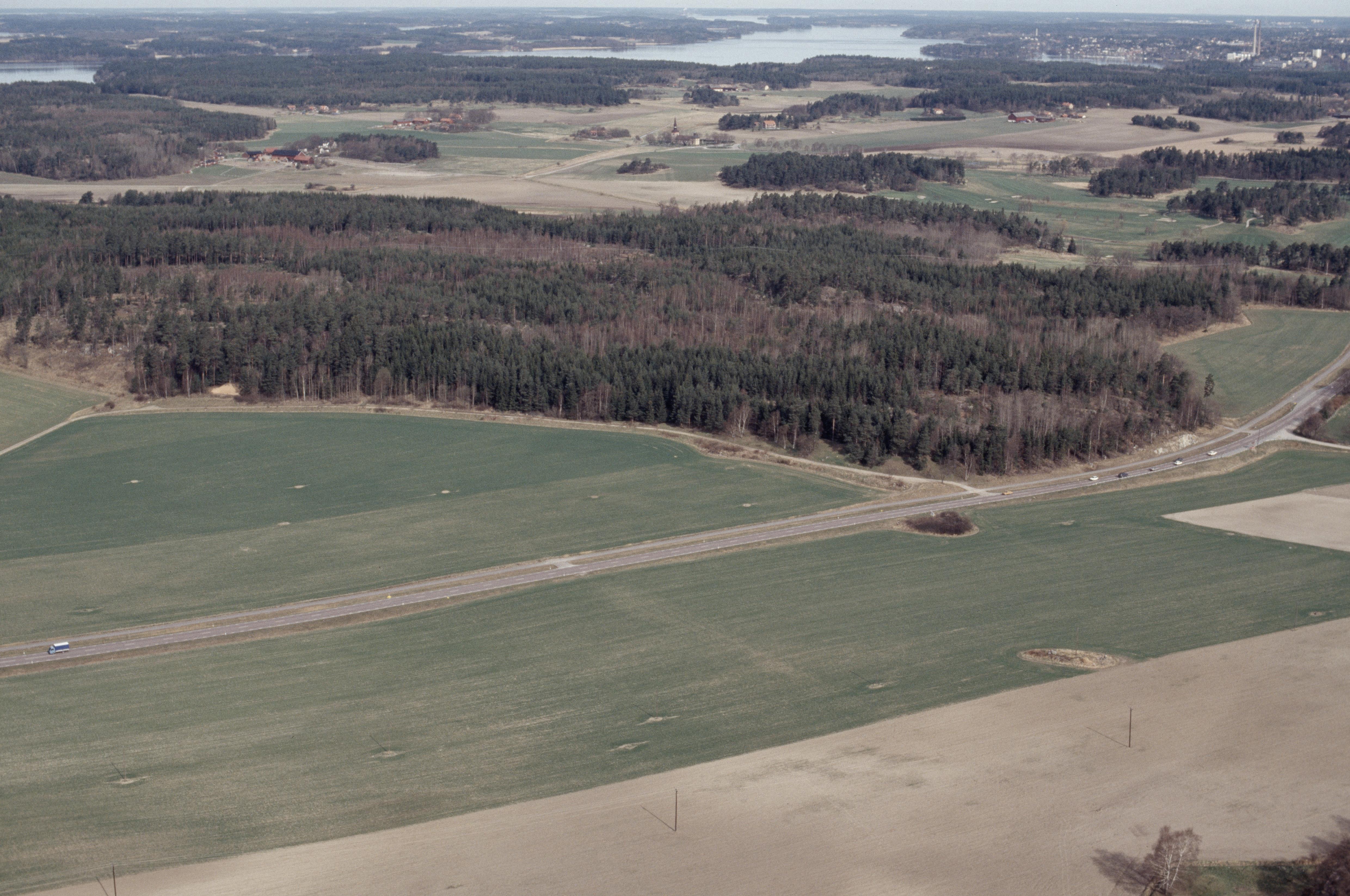Beskrivning: Vid bildens mitt gravfält RAÄnr Lovö 50:1 m.fl. I bildens övre del Lovöns golfbana och Lovö kyrka. Bilden är tagen mot (väderstreck): NV