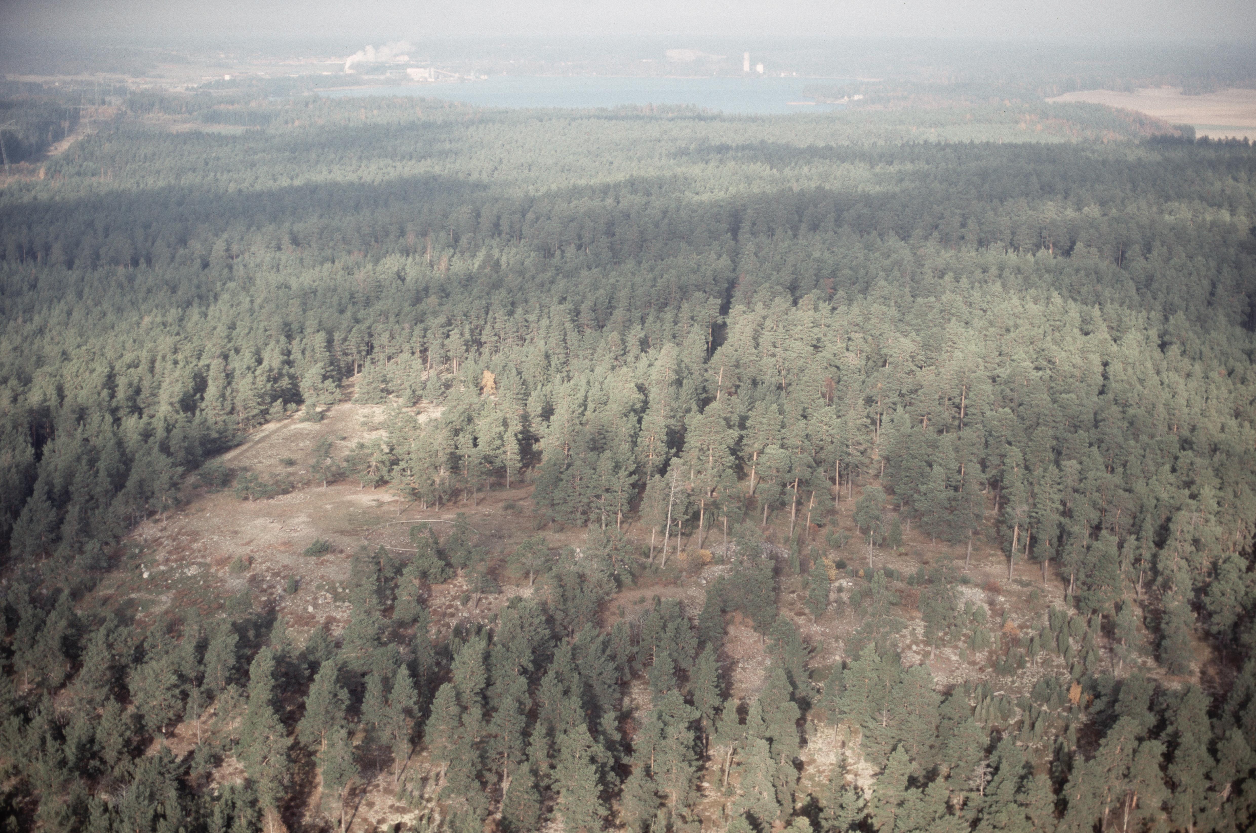 Beskrivning: Rösaringsåsen. Nere till vänster labyrint RAÄnr Låssa 24:1 och till höger gravfält Låssa 23:1. I bildens övre del färdväg (Rösarings processionsväg) RAÄnr Låssa 85:1 mot Kalmarviken i Mälaren. Bilden är tagen mot (väderstreck): N