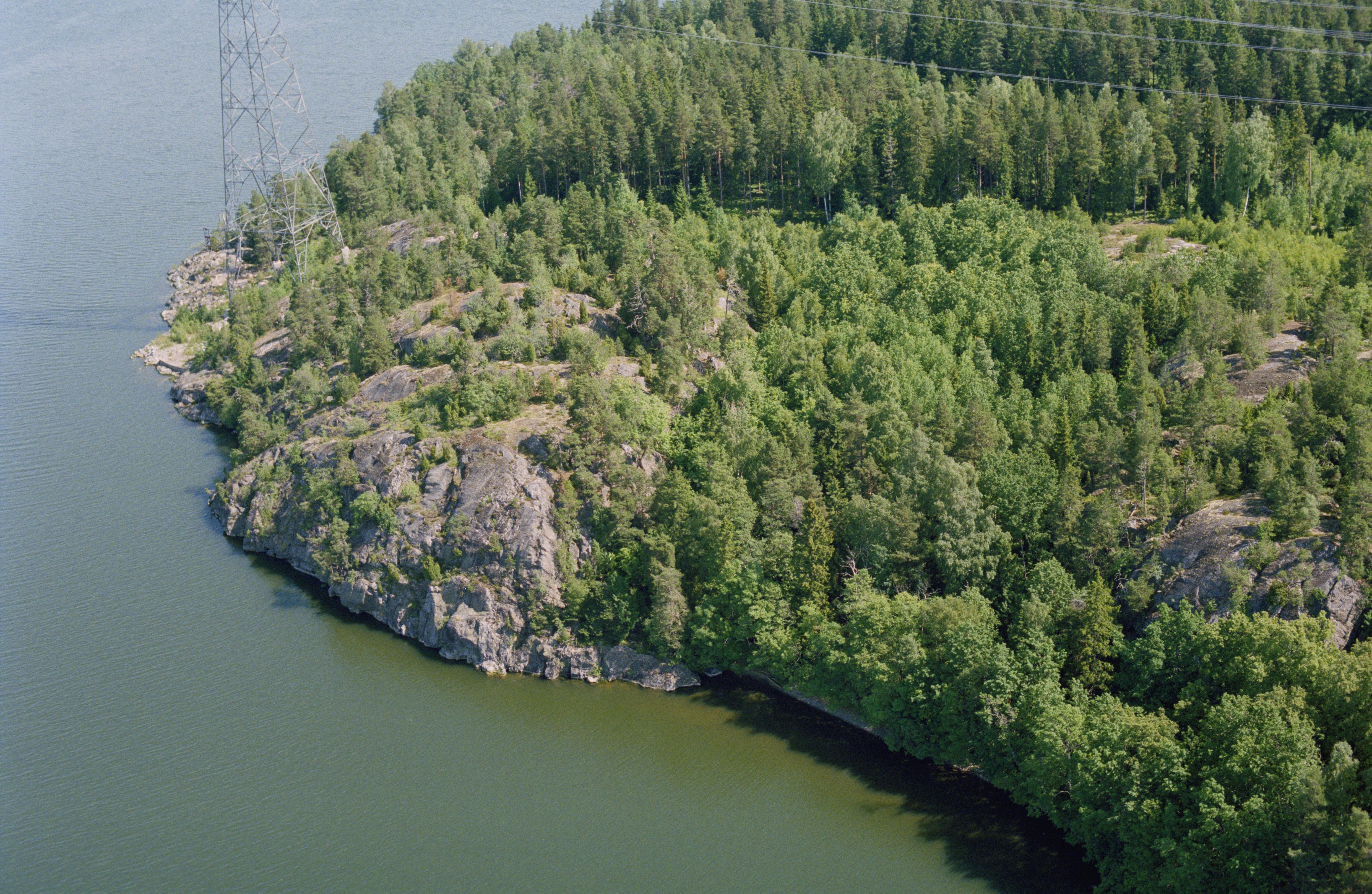 Beskrivning: Uppe till vänster kraftledning väster om Toresta herrgård, vid Vållsvik mellan Norra Björkfjärden och Kalmarviken i Mälaren. Vid bildens mitt fornborg RAÄnr Låssa 15:1. Bilden är tagen mot (väderstreck): NNO