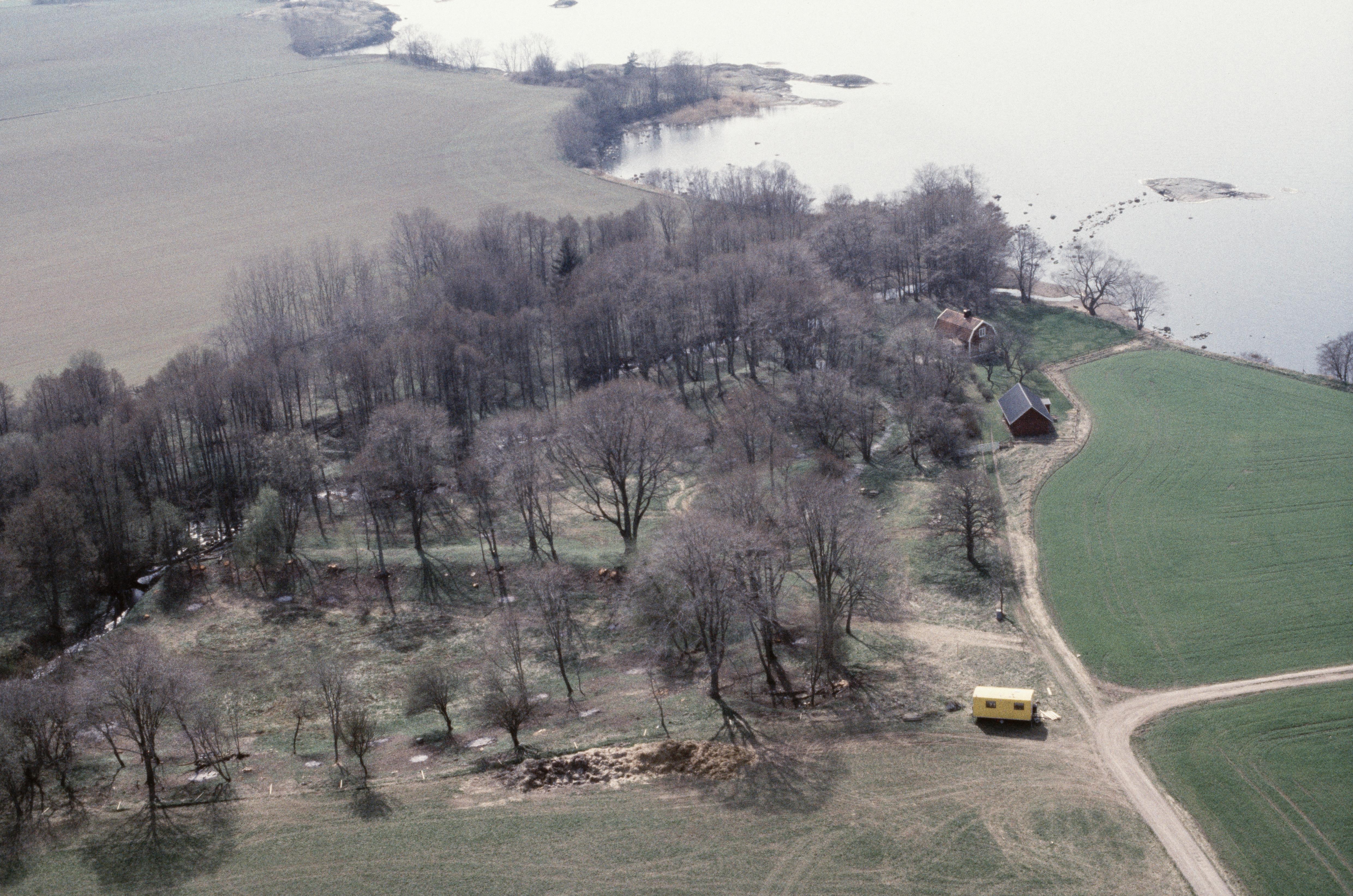 Beskrivning: Alvastra kloster. Ålebäcken i södra delen av klosterområdet. Kvarn RAÄnr Västra Tollstad 93:1, boplats Västra Tollstad 84:1 och tegelindustri Västra Tollstad 13:1 m.fl. vid bildens mitt. Bilden är tagen mot (väderstreck): VSV
