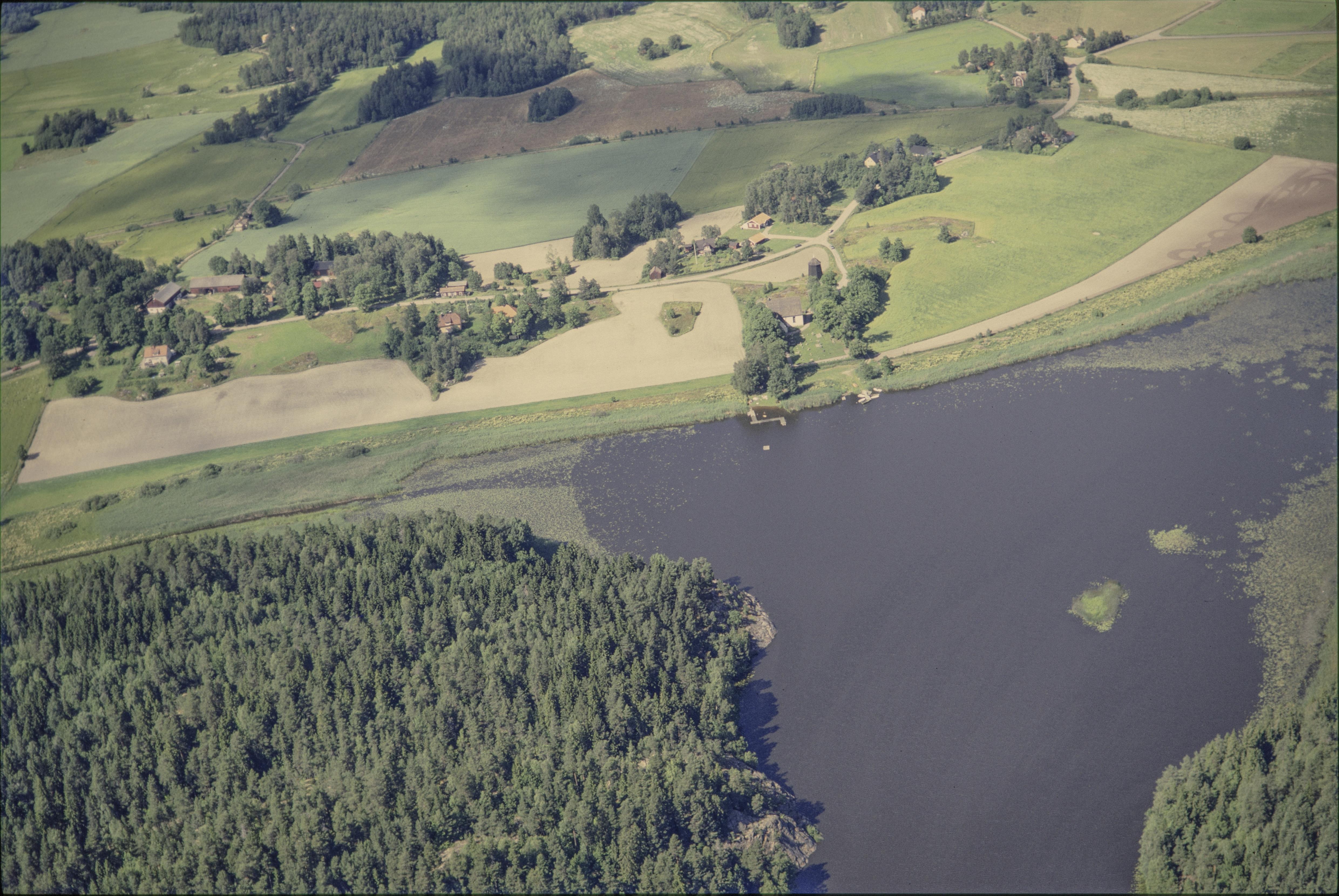 Beskrivning: Malstaby vid Malstasjön. Till höger över bildens mitt Malsta kyrka. Bilden är tagen mot (väderstreck): N