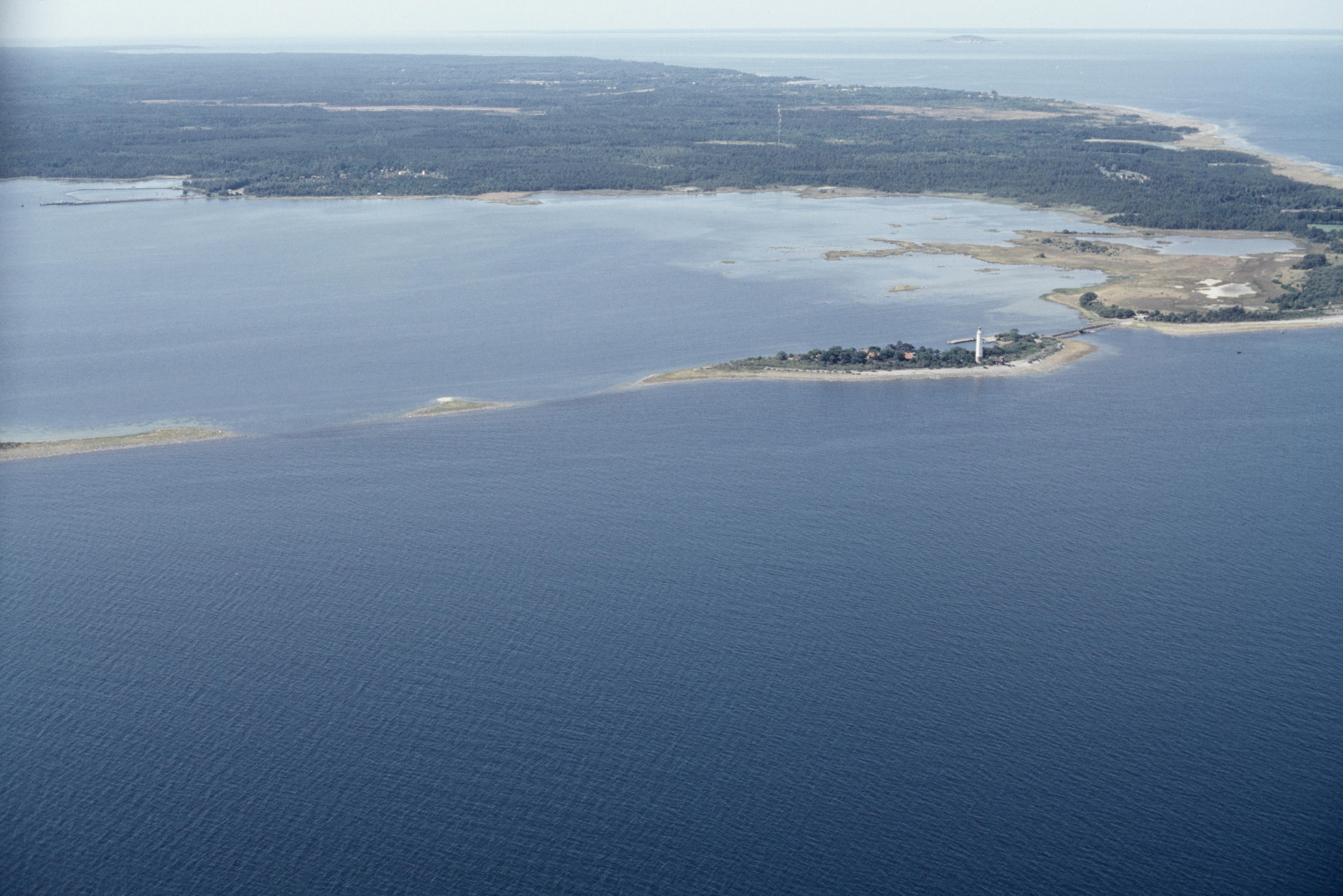 Beskrivning: Stora Grundet med fyrplats Långe Erik. I bildens övre del Grankullaviken med byarna Grankullavik och Nabbelund. Bilden är tagen mot (väderstreck): SV