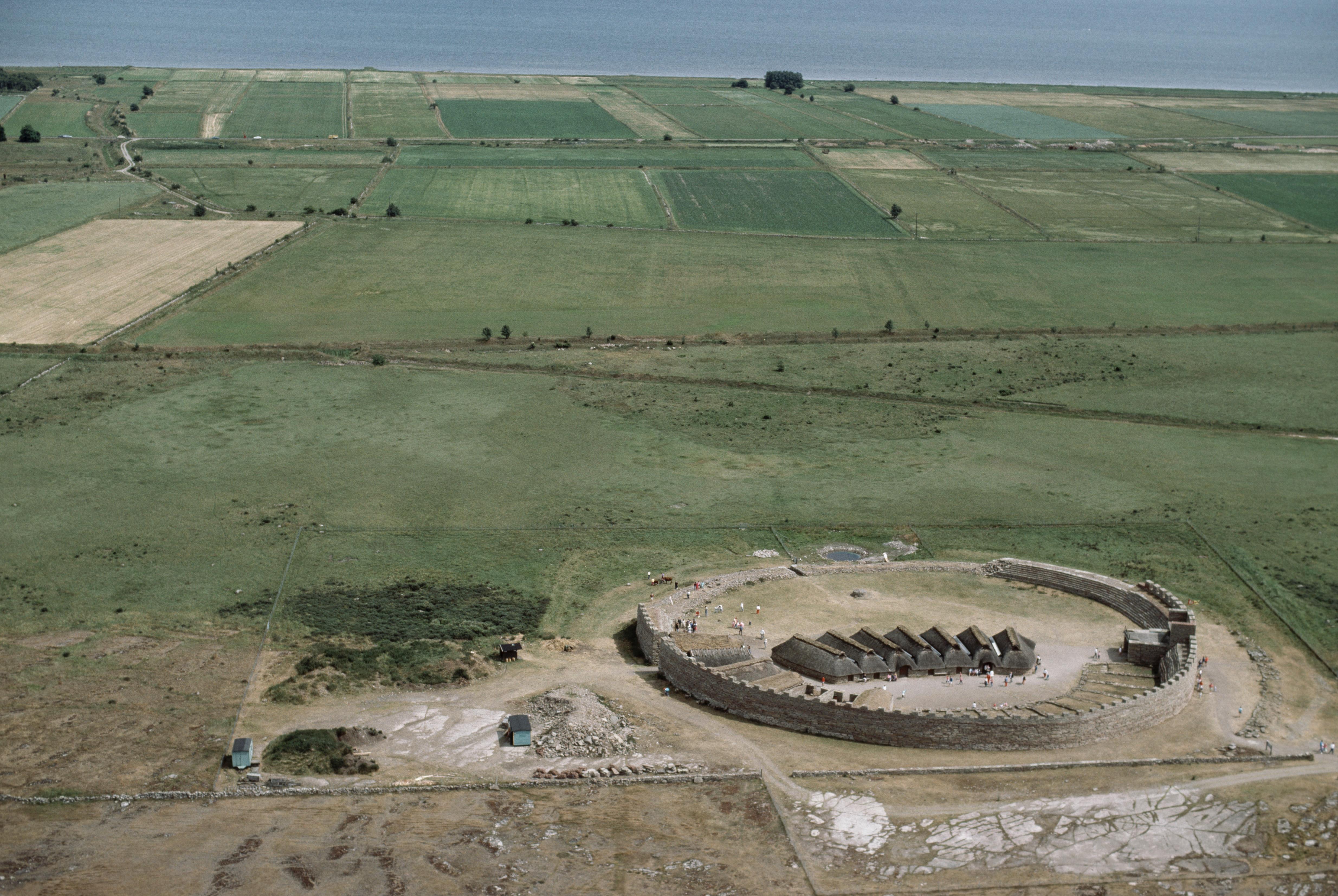 Beskrivning: Anmärkning (övrig): Riksintresse-nr/namn: H3 - Eketorp. Socken: Gräsgård. Motivering: Märklig fornlämningsmiljö med Eketorps fornborgsmiljö av högt vetenskapligt och pedagogiskt värde. - Uttryck för riksintresset: Delvis rekonstruerad ringformig flatmarksborg i strategiskt läge vid Östersjön, ianspråktagen under tre olika perioder, 300-1200 e Kr. Sannolikt har den rika järnåldersbosättningen vid det närbelägna Sebbernebymiljön (H2) samt ett rikt stråk norr om borgen med såväl talrika gravar på Stora alvaret som delvis borttagna järnåldersbosättningar i åkermarken ett samband med någon av borgens olika funktioner. - I området ingår även: På strandvall i öster är stensättningen "Vårdbötet" på vilken sannolikt en(…) Texten i detta fält har förkortats vid migrering till e-arkivet. Se filbilagan extra.xml för fullständig information under note_archivist. Beskrivning: Alvaret, södra delen. Fornborgsmiljö Eketorps borg RAÄnr Gräsgård 45:1. Bilden är tagen mot (väderstreck): OSO Fotosyfte: Flygbildsdokumentation
