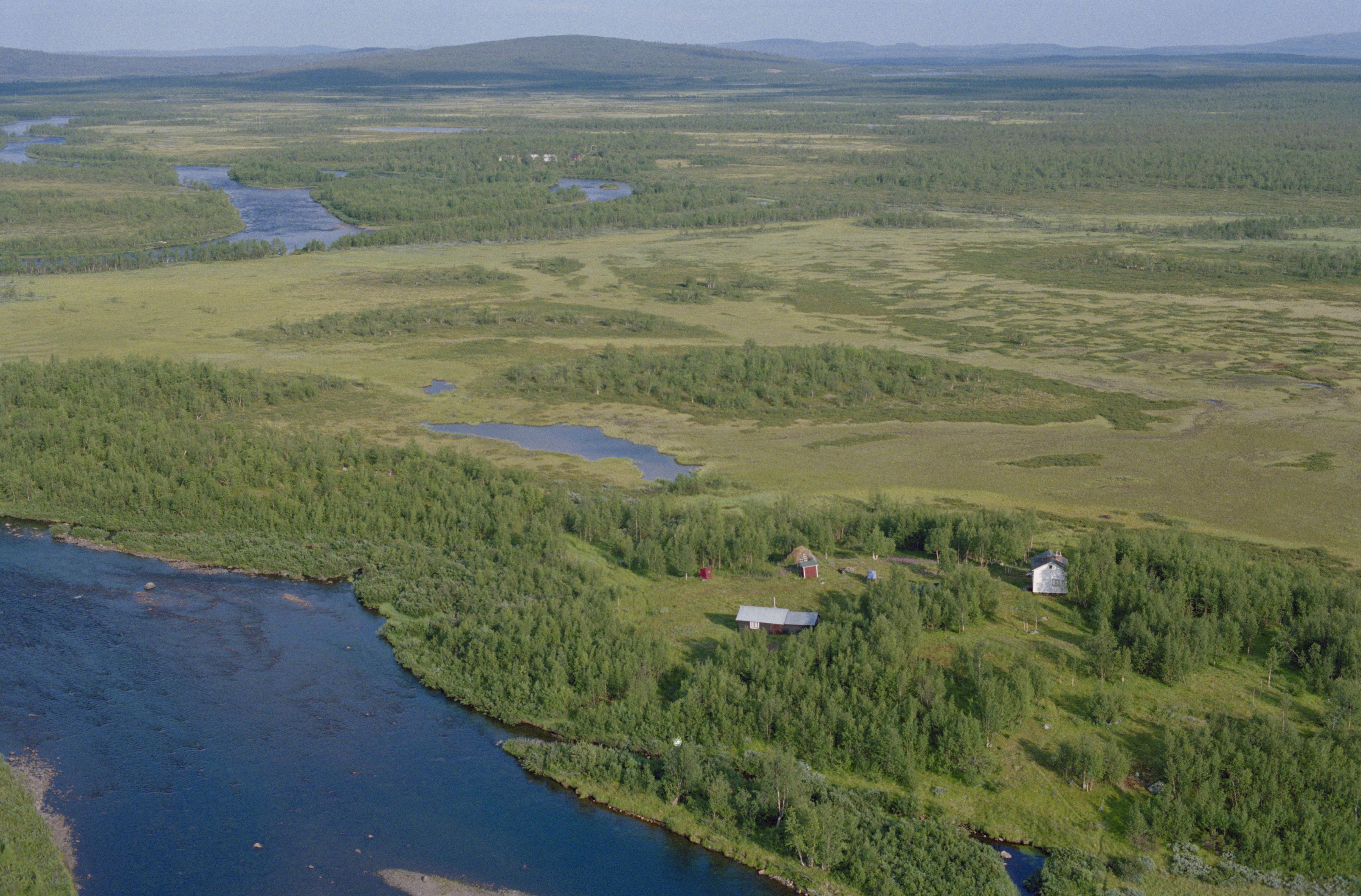 Beskrivning: Västra delen av Rautas (Rávttas) by vid Rautasälven (Rávttaseatnu). Området ingår i Gabna sameby och Rautas fjällurskogs naturreservat. Bilden är tagen mot (väderstreck): SO