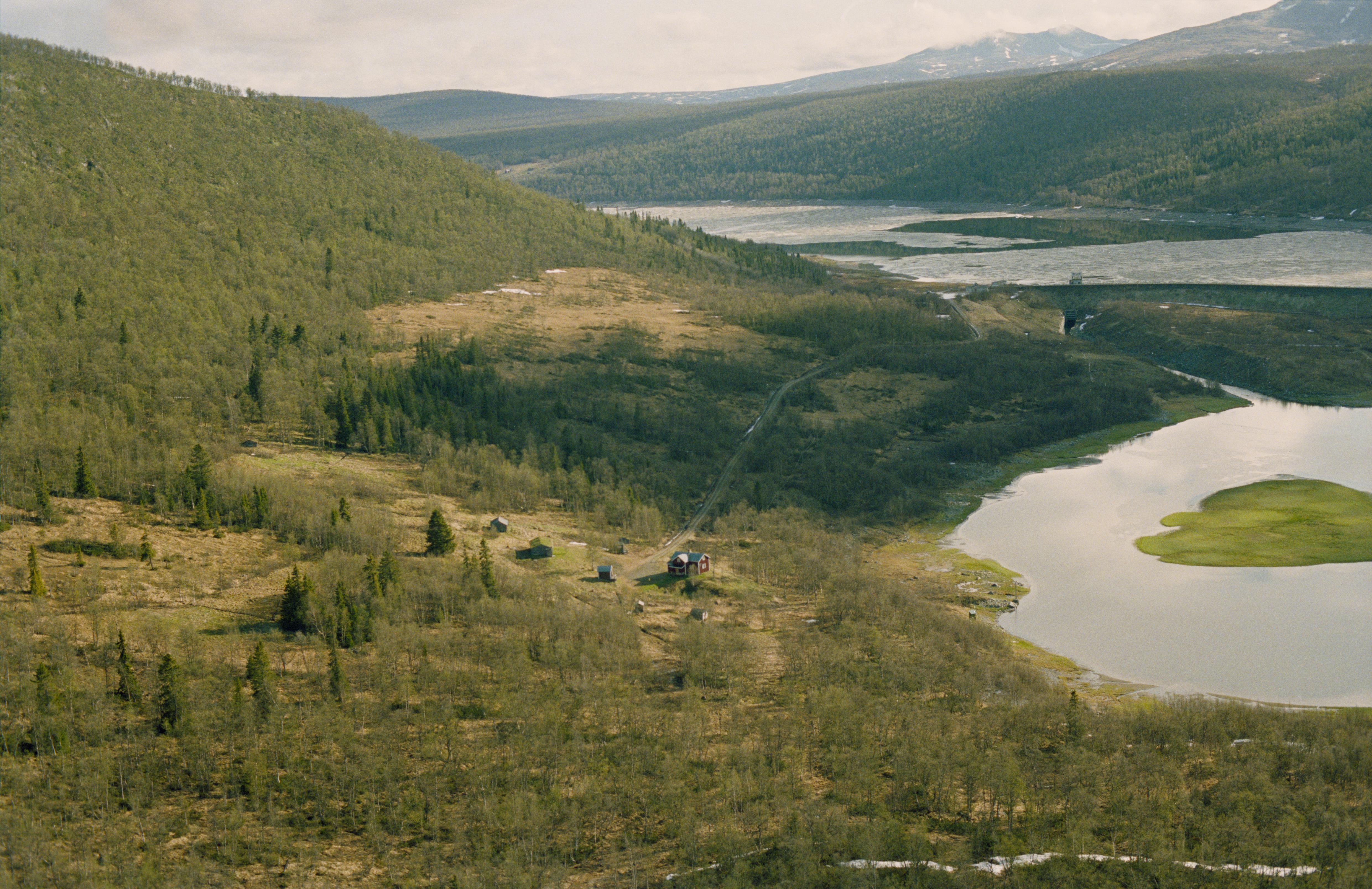 Beskrivning: I bildens nedre del en gård i området Övre Selet. Uppe till höger södra ändan av sjön Ransaren. Vid Ransarluspen till höger om bildens mitt boplats RAÄnr Vilhelmina 19:1, 22:1 och fångstgrop Vilhelmina 21:1. Bilden är tagen mot (väderstreck): NNO